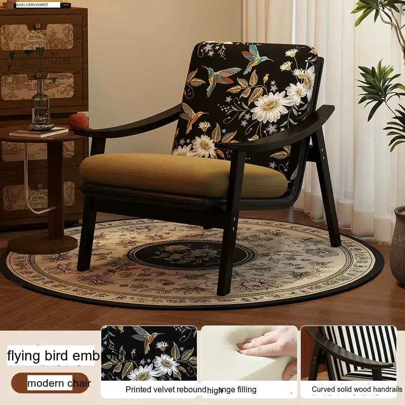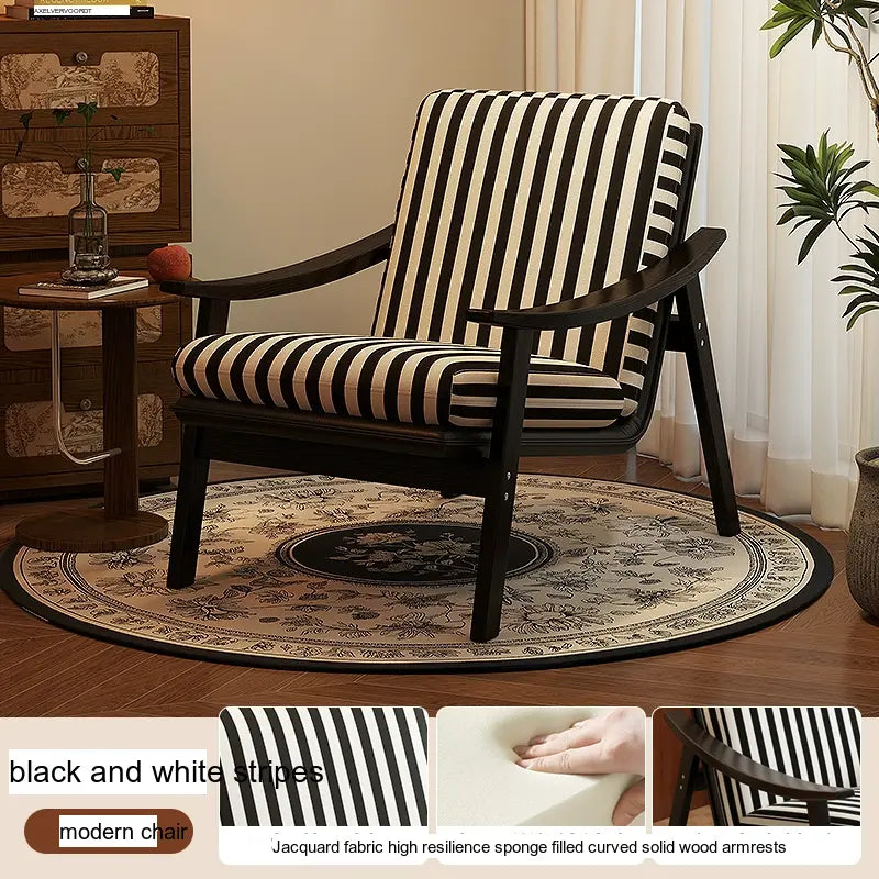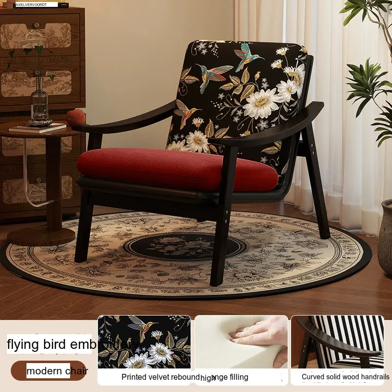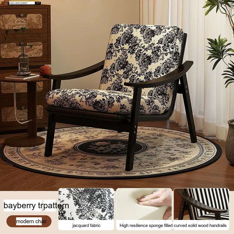 The MENILE Lucien armchair is constructed from solid wood, providing a sturdy and durable frame that is designed to withstand the test of time. The armchair features a variety of captivating fabric options, including the exquisite Feiniao embroidery in both yellow and red, alongside the stylish black and white stripes and the unique babyberry tree pattern. Each fabric choice adds texture and personality, allowing you to customize the chair to fit your individual style.