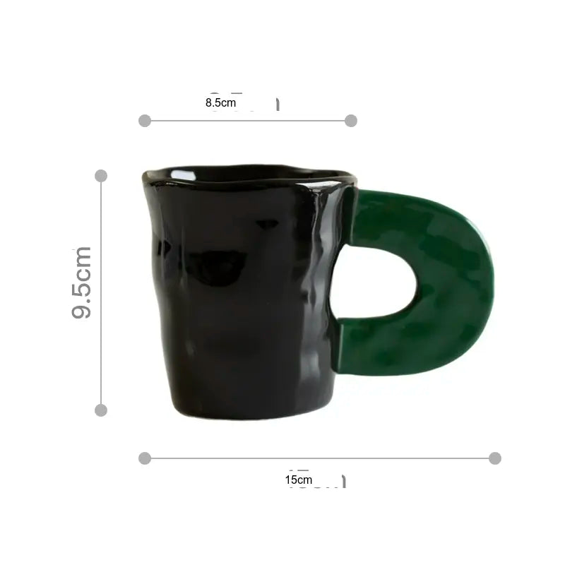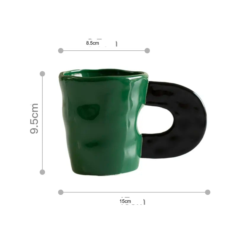 Every Jasper Coffee Cup features a striking contrast of colors, creating a visual appeal that is both contemporary and timeless. Available in an array of stunning color combinations, such as the Green Cup with Black Handle, Black Cup with Green Handle, Red Cup with Black Handle, and more, there is a perfect choice to match your personal style or kitchen decor. The artful design belongs to the popular INS风 style trend that continues to influence modern home aesthetics.