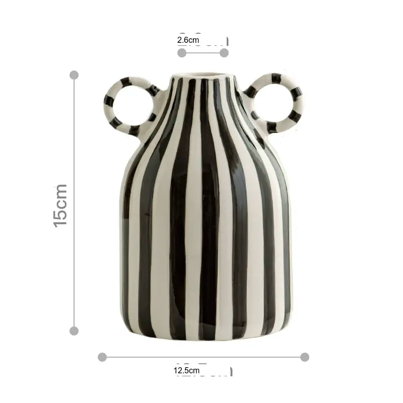 Crafted with high-quality ceramics, the Kairo Vase boasts a contemporary vintage design that features a captivating striped pattern. The contrasting colors of Baby Blue and Retro Black create a visually appealing yet understated look. Whether you're looking to accentuate your bedroom, living room, or any other space in your home, this vase serves as a versatile decorative piece that can seamlessly blend with various styles of interior design.