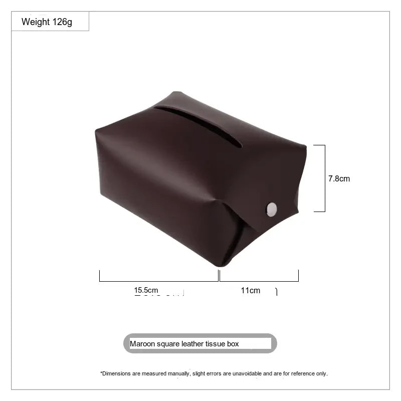 Constructed from premium leather, the tissue cover boasts durability and a luxurious appearance. The leather finish provides a soft texture and a polished look, ensuring that it remains an eye-catching centerpiece on your coffee table, desk, or bedside table. The choice of leather not only signifies quality but also guarantees that this piece will stand the test of time, resisting wear and tear while maintaining its elegance.
