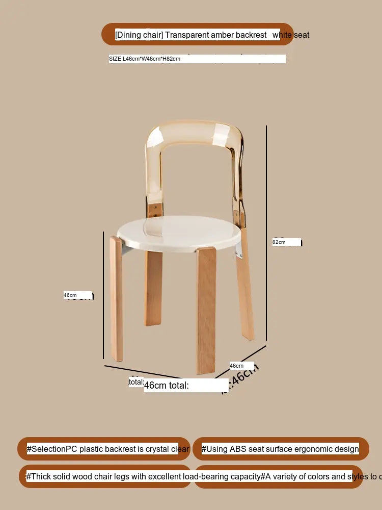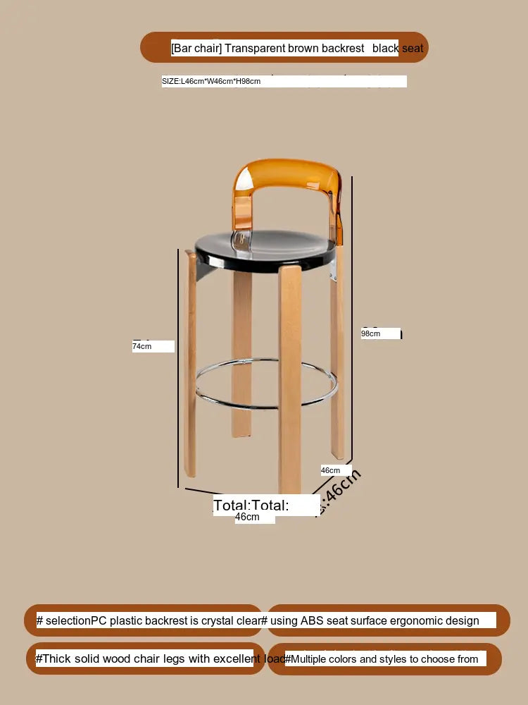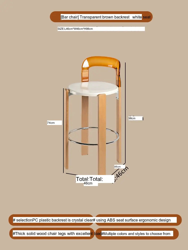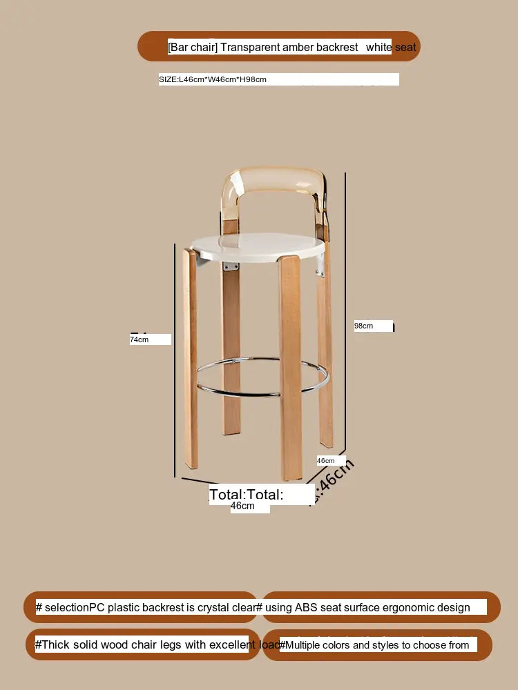 The Elowen bar stool boasts a sleek and minimalist aesthetic, seamlessly fitting into modern interiors. Its clean lines and understated elegance make it an attractive focal point in kitchens, bars, or dining areas. Available in various color combinations such as a transparent brown backrest paired with a white or black seat, and transparent amber or ash backrests, this stool is designed to complement your existing furniture while adding a touch of sophistication.