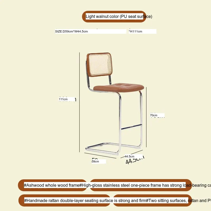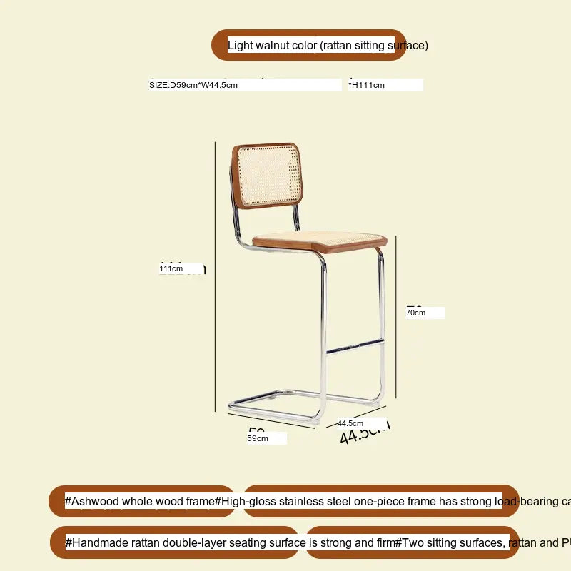 The YIJIAXIN Oliver Bar Stool features an elegant rattan design that embodies the essence of modern age craftsmanship while reflecting traditional styles. The woven rattan seating provides a natural and organic texture, making it eye-catching and inviting. Offered in various color options, including Black, Light Walnut, and Natural Wood, you can choose the one that best complements your interior decor. With a sitting height of 70cm, this stool is perfectly suited for standard bar counters, providing an optimum seating solution without compromising on style.