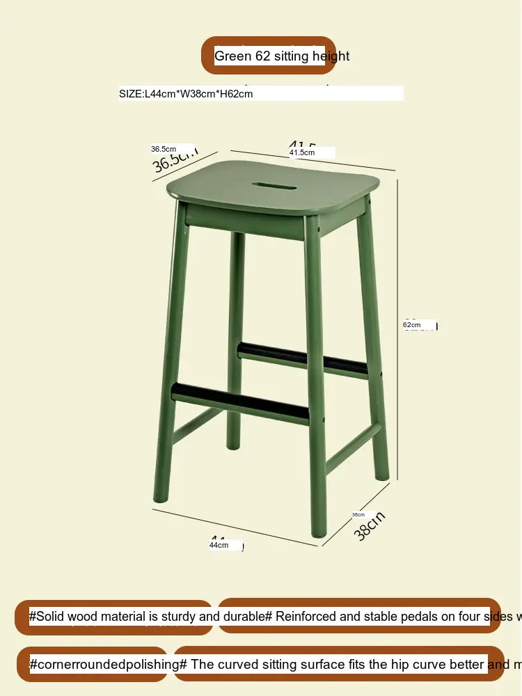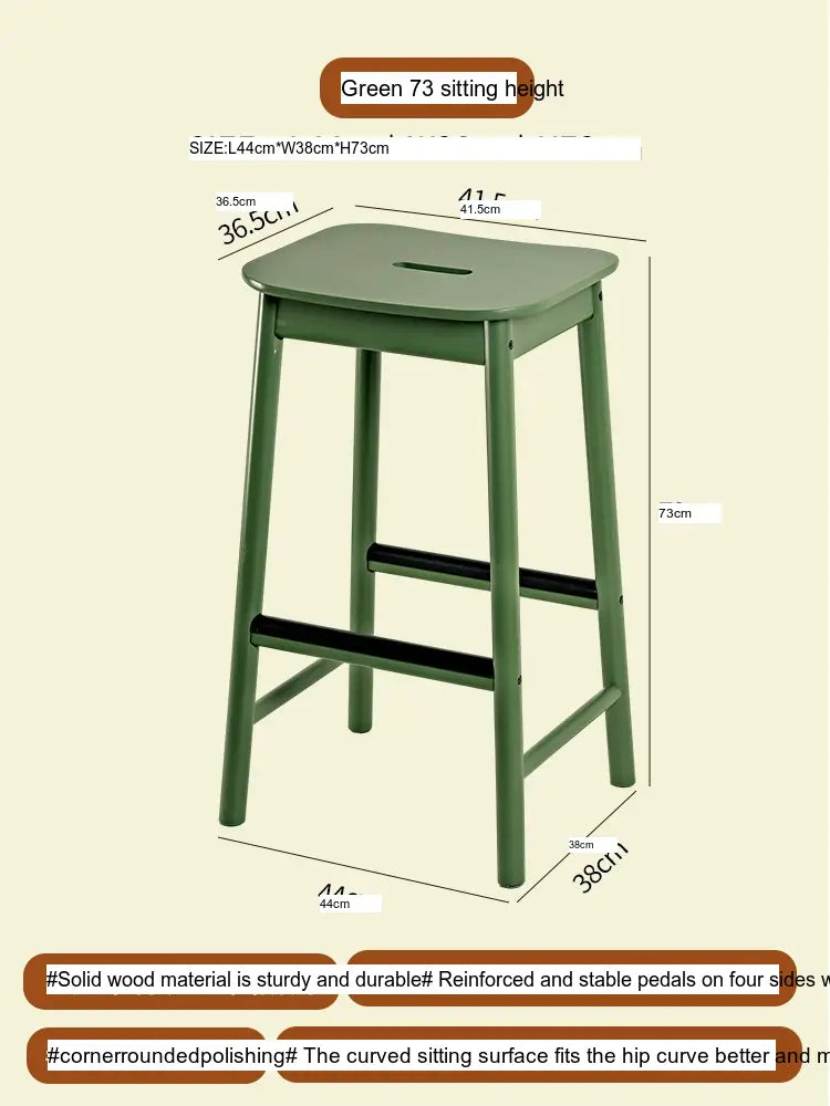 Constructed from high-quality solid wood, the barstool guarantees durability and longevity. The material brings warmth and texture to the piece, while the natural wood grain is uniquely showcased, making each stool a one-of-a-kind creation. Available in three stunning colors—Log Wood, Black, and Green—you can select the perfect tone to enhance your space and express your style.