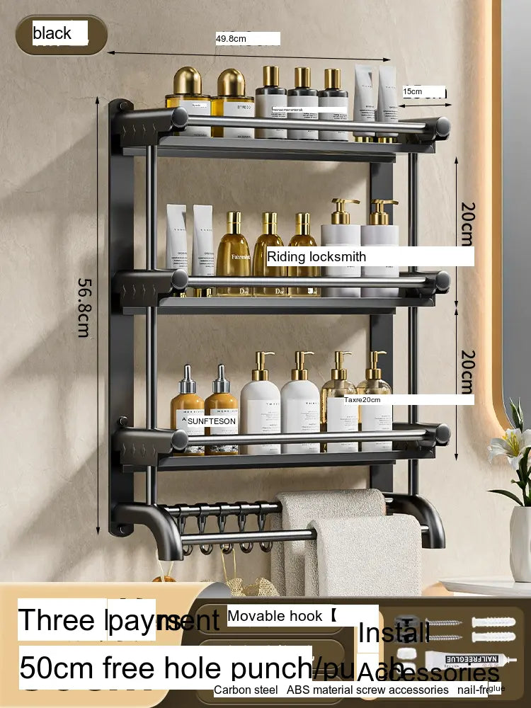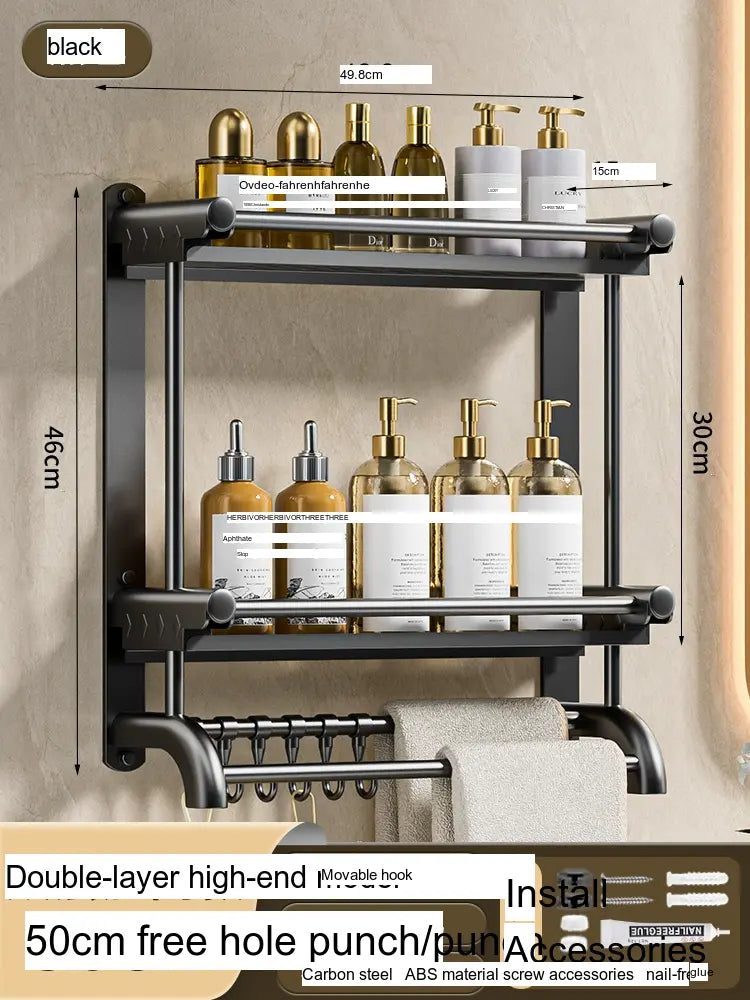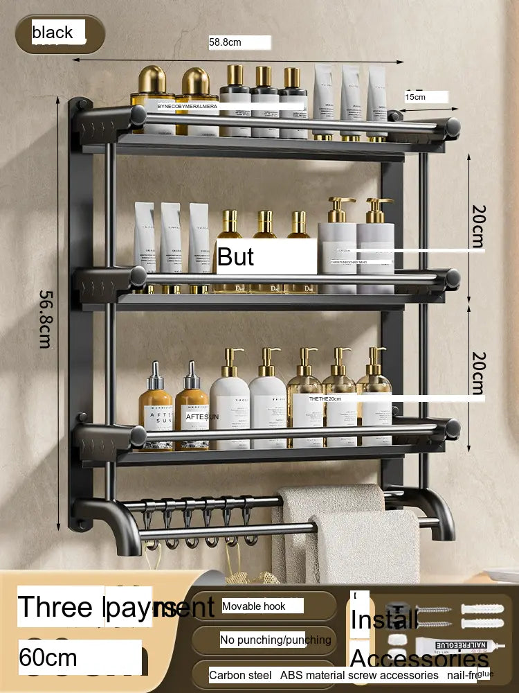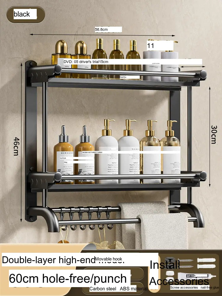 The unique high-temperature paint finish not only contributes to its aesthetic appeal but also makes it resistant to rust, moisture, and corrosion. The open and hollow bottom plate design promotes effective ventilation, preventing water accumulation and keeping your items dry and mildew-free. With higher guardrails to prevent falling and versatile movable hooks, the ZENCAI Marisol guarantees safety and functionality without sacrificing style.