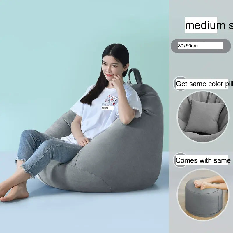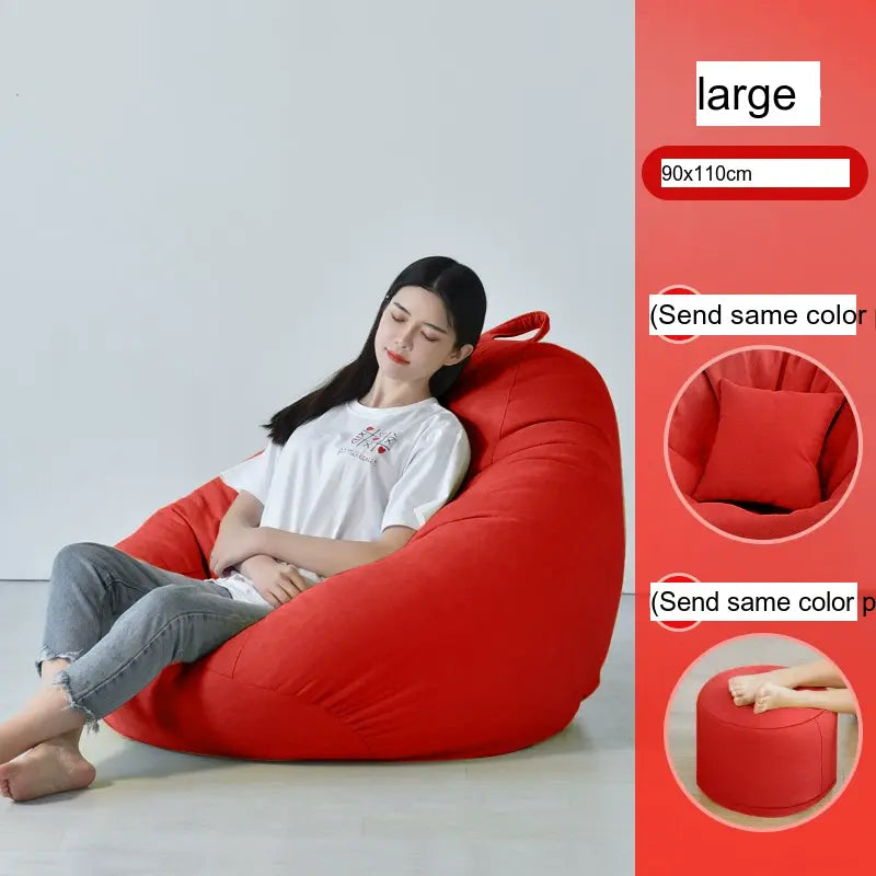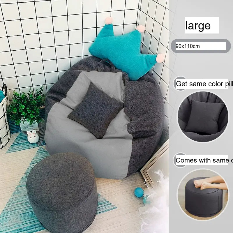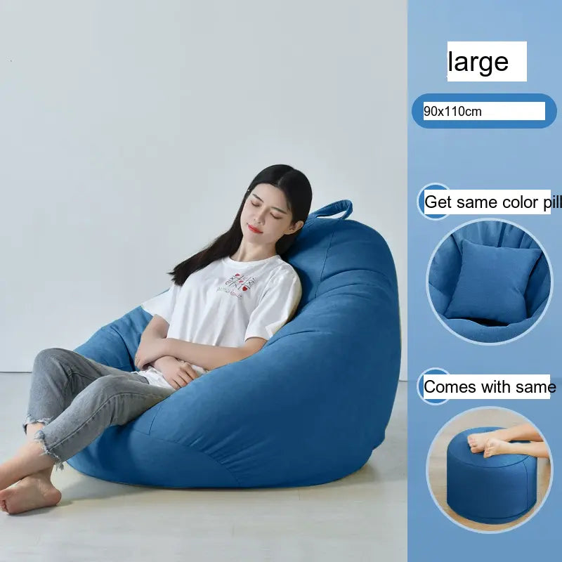 This bean bag sofa comes with bonus accessories: a soft pillow and a comfortable footrest. The pillow provides additional neck support, making it perfect for watching movies, reading, or just relaxing after a long day. The footrest allows you to elevate your feet for enhanced comfort, completing the perfect lounging setup.