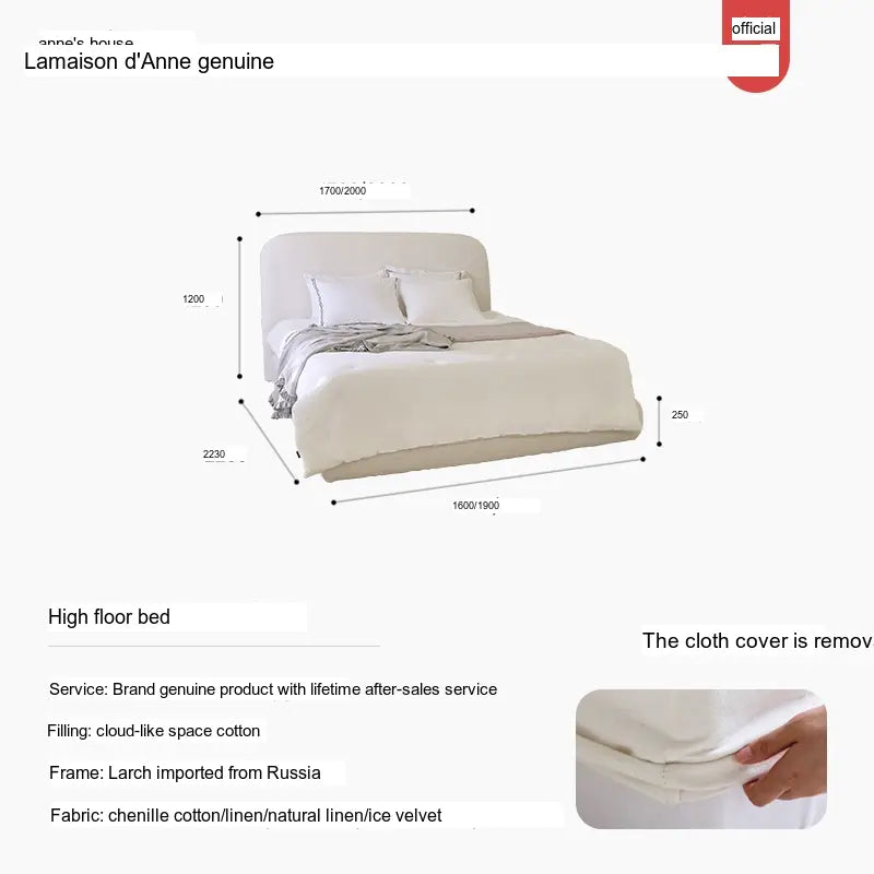 ANNE Montgomery Chic Detachable White Cotton Linen Bed Frame