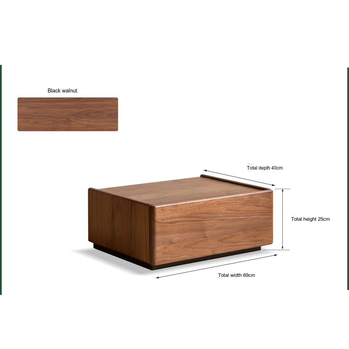 The nightstand is constructed from 100% pure solid wood, specifically Black Walnut—a wood known for its rich, dark hues and striking grain patterns. This material is not only aesthetically pleasing but also highly durable, ensuring your nightstand will resist wear and tear while maintaining its beauty. The natural properties of Black Walnut make it an excellent choice for furniture, as it is resistant to both warping and scratching.