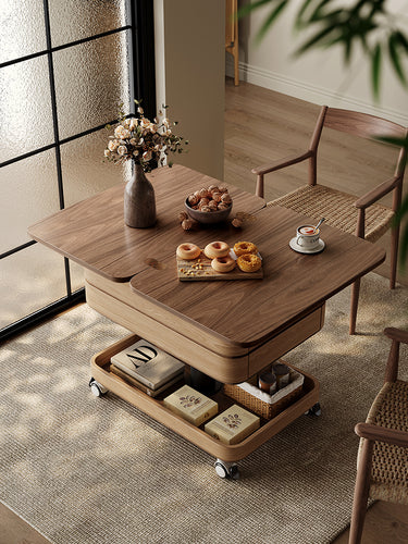 More than just a side table, the Haruki model offers versatile functionality. It can transition effortlessly from a coffee table during gatherings to a convenient snack cart or side cabinet when needed. The innovative design includes a rotating tabletop that allows for easy access to items, making it perfect for social gatherings, reading nooks, or game nights.