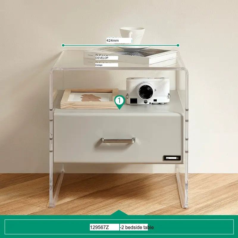 Equipped with a single drawer, this bedside table provides ample storage for books, reading glasses, or nighttime essentials. The ingenious design includes semi-open storage that allows for easy access, ensuring that your items are organized and within reach. The high-quality acrylic construction promises durability while maintaining an elegant look. The U-shaped metal handle adds a touch of sophistication and makes opening the drawer effortless. With its functional design, the Isadora bedside table proves that practicality can also be chic.
