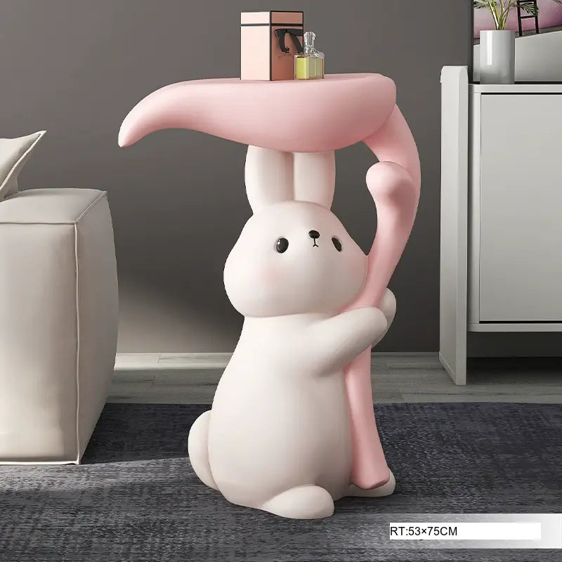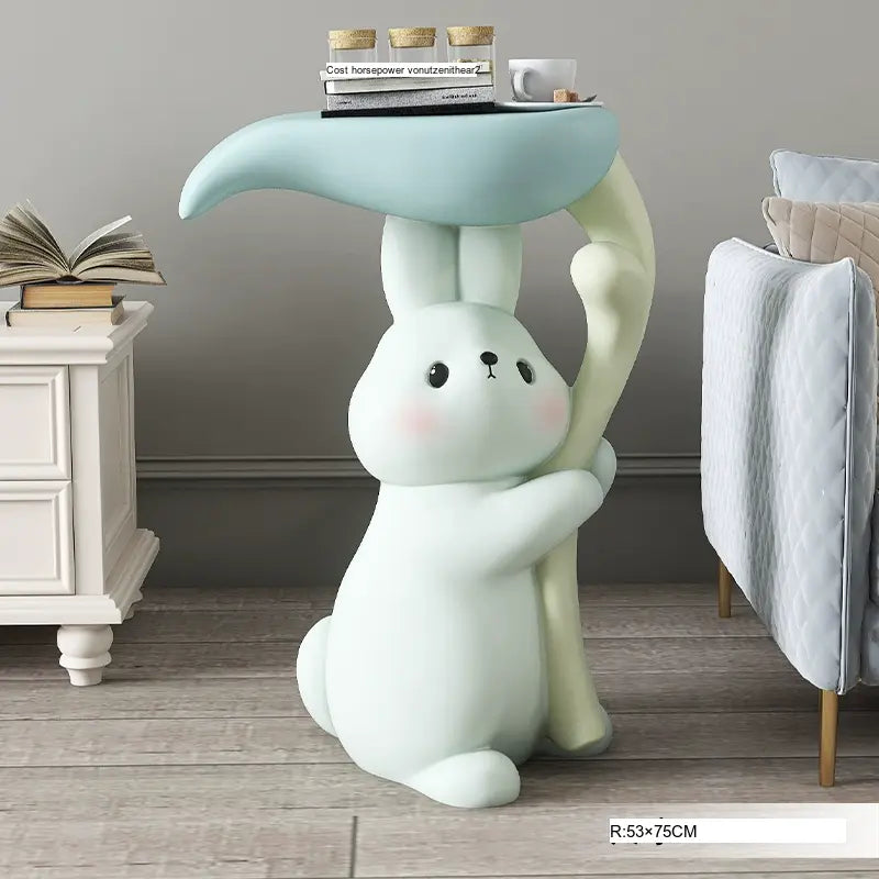 Featuring an adorable bunny holding a large leaf, the YUNCAN Bunny Leaf Side Table combines artistry with practicality. Its smooth curves and gentle colors evoke a sense of warmth and friendliness, making it an eye-catching accent piece in any modern or contemporary setting. This table is ideal for holding small items like drinks, books, or decorative objects, while also serving as a fun focal point.