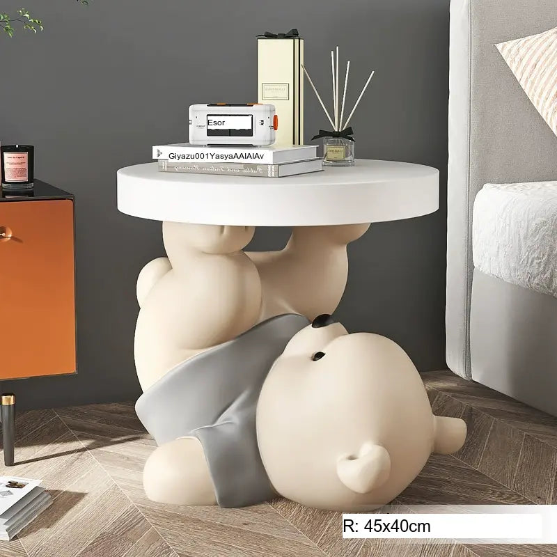 Featuring an endearing bear holding a round tray, the YUNCAN Milo Bear Side Table combines artistry with practicality. Its smooth curves and charming posture evoke friendliness and comfort, making it an eye-catching accent piece in any modern or contemporary setting. Ideal for holding small items like books, drinks, or decorative objects, this table adds both function and playful charm.