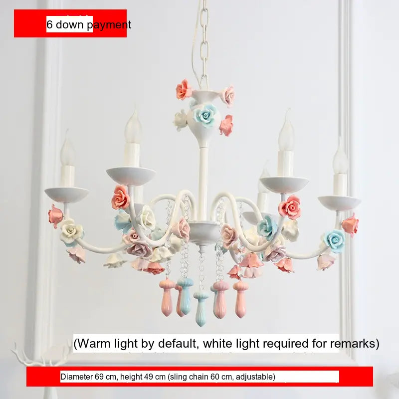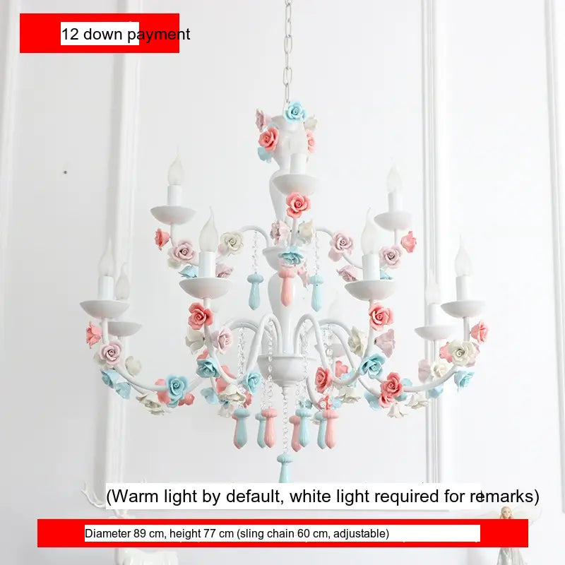 The Lancelot chandelier features a beautifully crafted floral motif, reminiscent of a blooming garden captured in mid-spring. Each petal is meticulously designed to create a sense of grace and elegance. Made from high-quality iron and adorned with ceramic elements, this chandelier not only boasts a delightful aesthetic but is also built for durability and longevity. The artistic details in its design make it an eye-catching focal point in any interior setting.