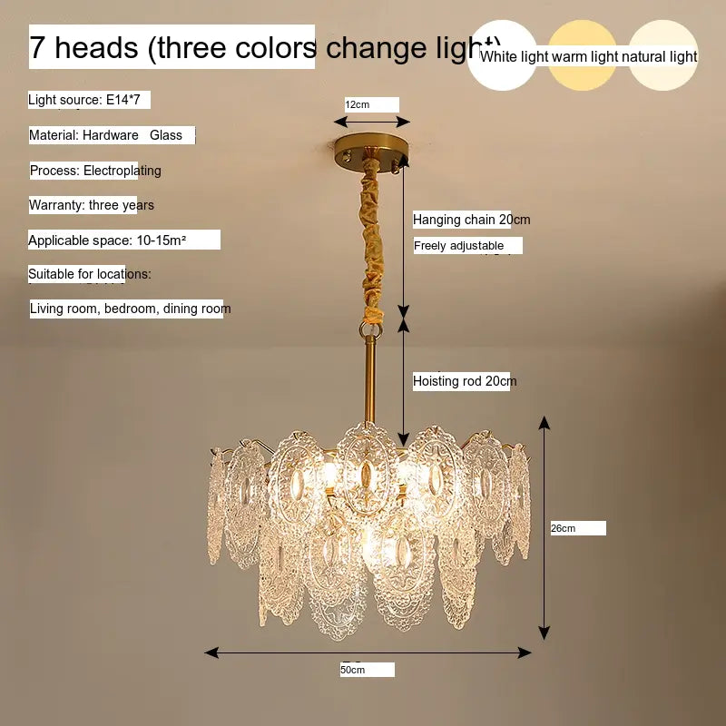 Measuring a generous size that provides ample lighting, the chandelier is perfect for dining rooms, living rooms, and even entryways, ensuring that your spaces are illuminated with style. The stunning glass shades, reminiscent of vintage designs, diffuse light beautifully, creating a warm and inviting atmosphere conducive to relaxation and entertainment.