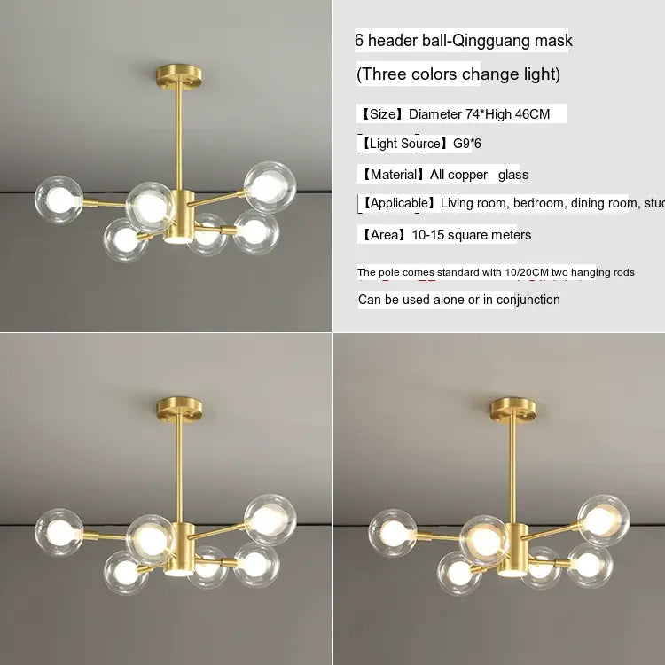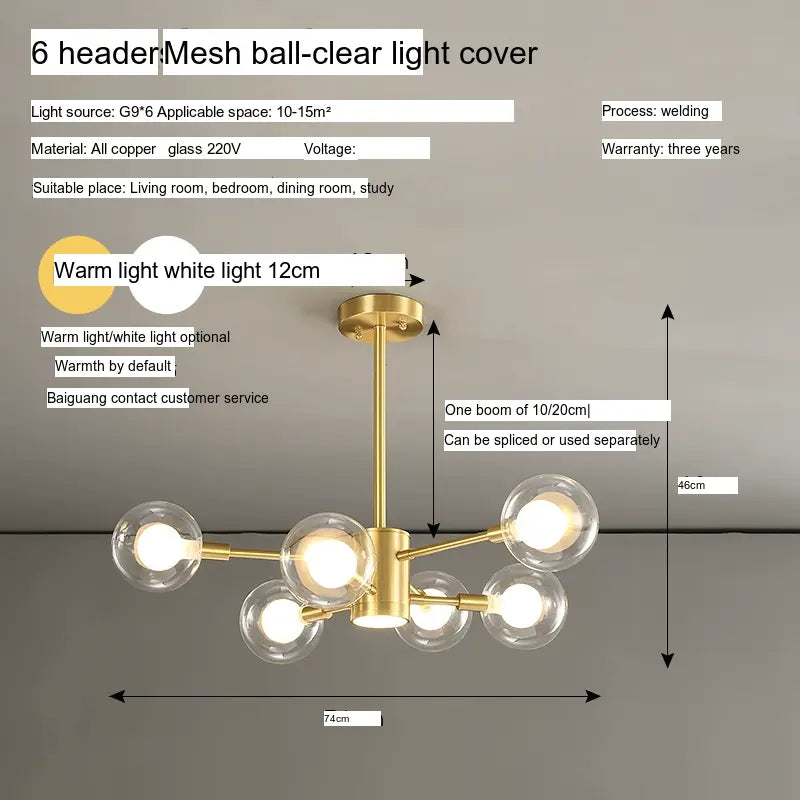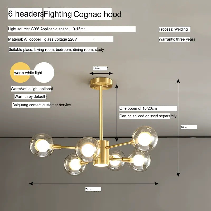 Illuminate your home with the exquisite artistry of the ISIHO Verona Magnificent Copper Glass Chandelier. This breathtaking chandelier is not merely a source of light but a bold statement piece, designed to enhance any decor style. Combining superior craftsmanship, modern aesthetics, and timeless elements, this 6-head chandelier is sure to captivate all who enter your space. Adorned with beautifully crafted glass lampshades and a stunning copper finish, it brings an elegant touch to living rooms, dining areas, or grand entryways.