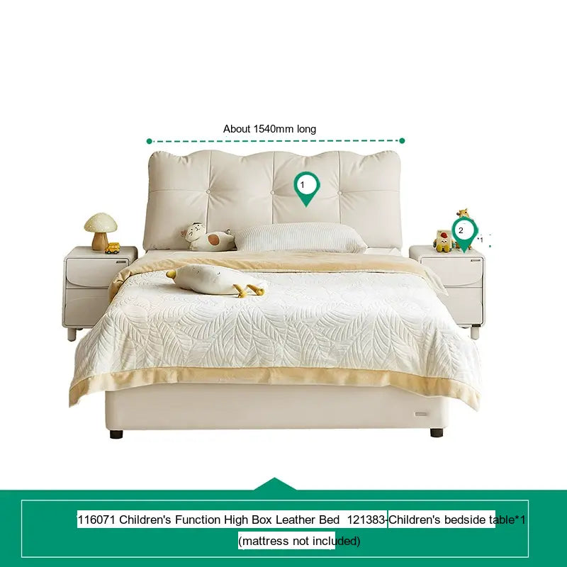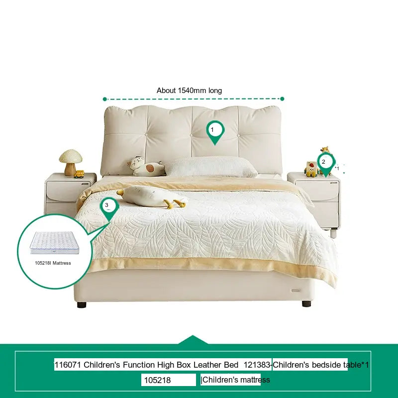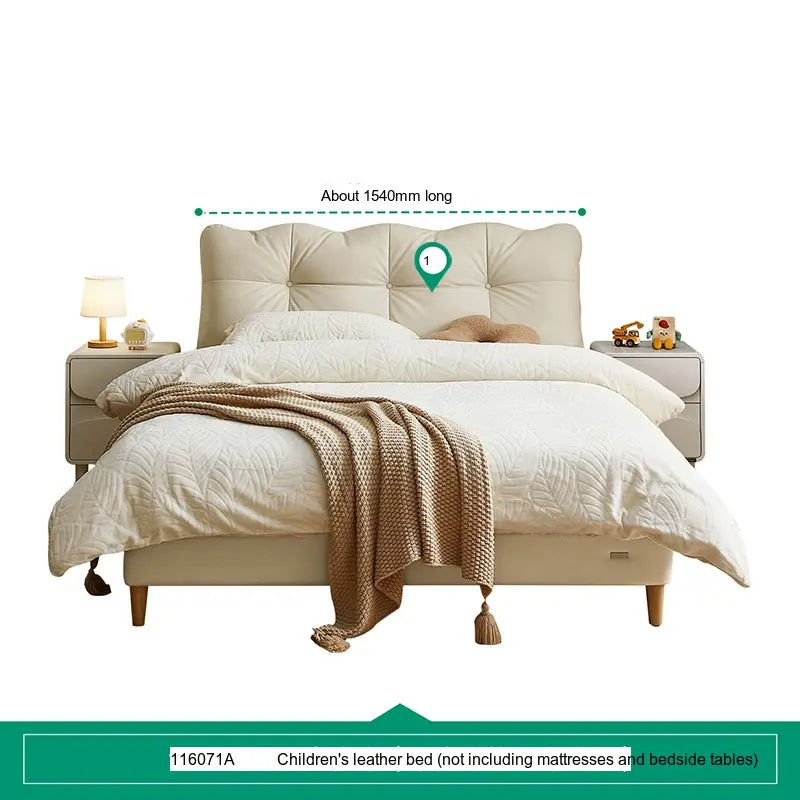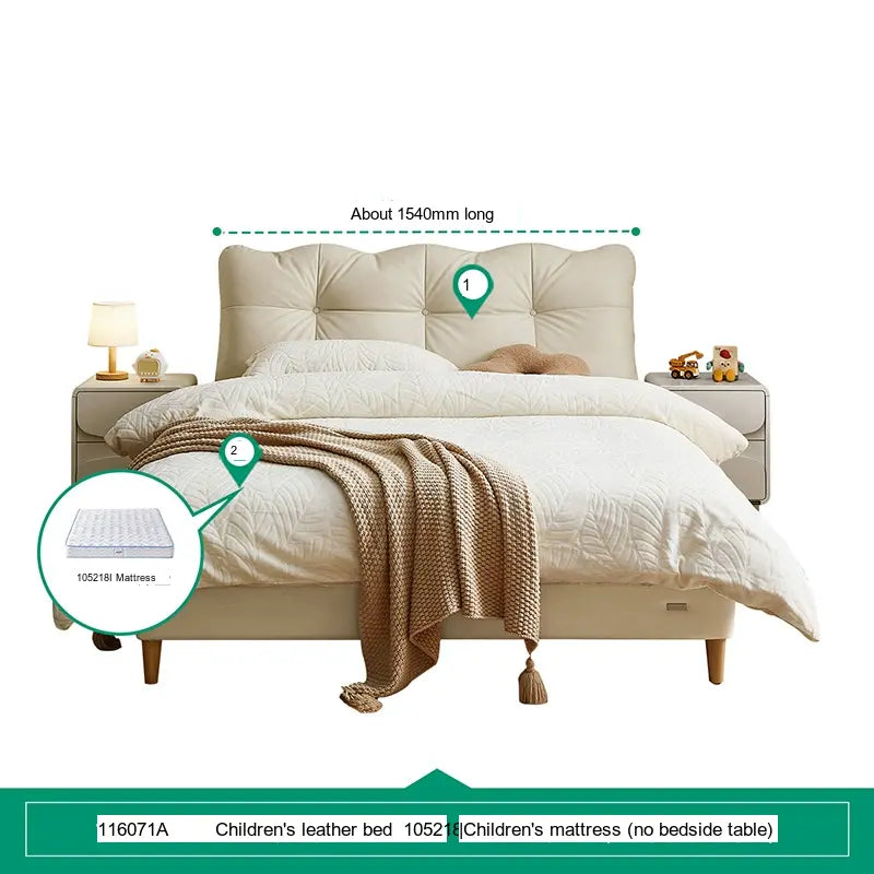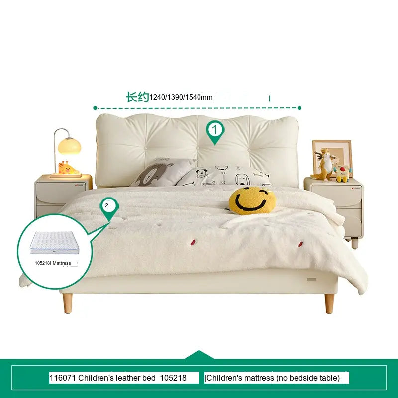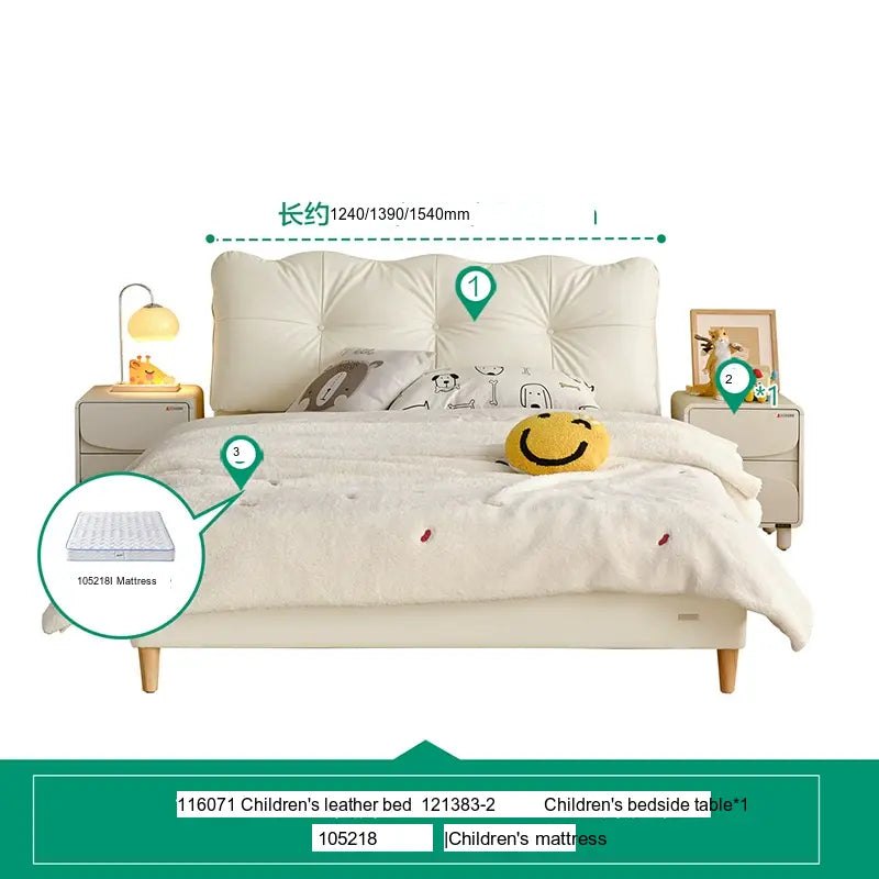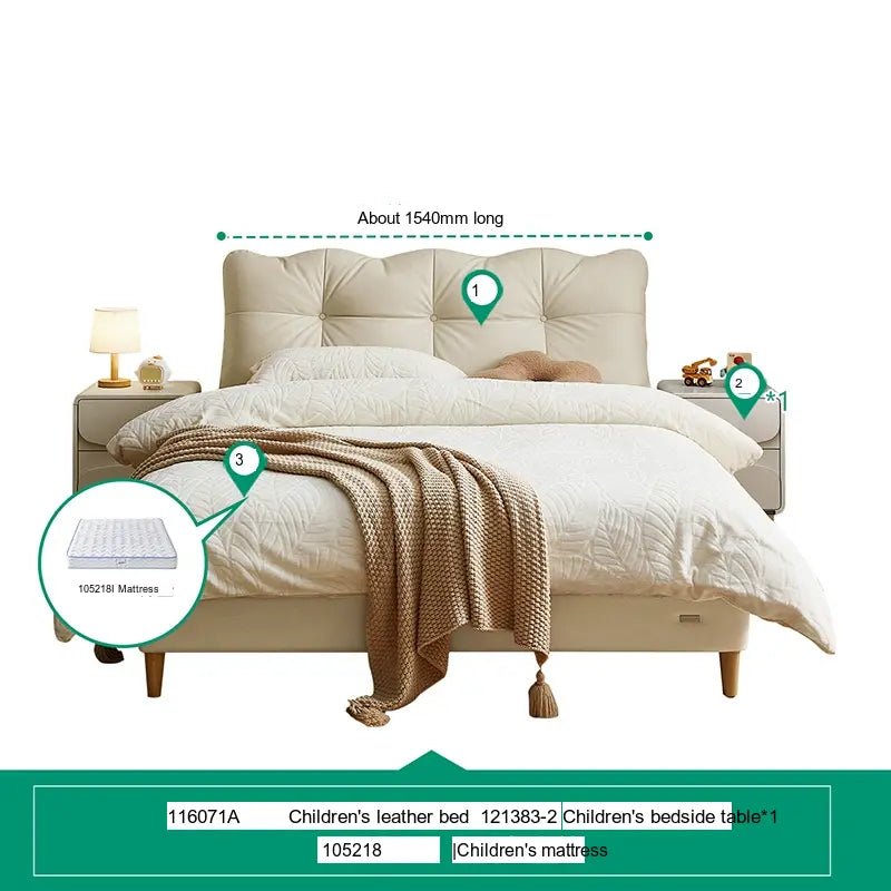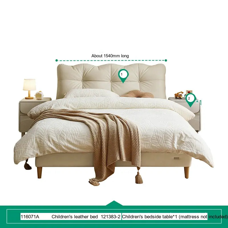 Customization is at the heart of the Lysander collection, allowing parents to select from a variety of subtle beige tones and stylish cowhide upholsteries. This flexibility means you can easily tailor the bed to fit your child's personality or complement the existing bedroom theme. Furthermore, to elevate the room's aesthetic, matching bedside tables—available in single or double options—are also part of the collection, providing an integrated look.