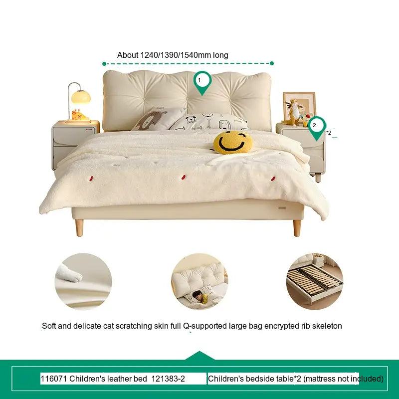 Constructed from top-grade materials, the Lysander bed features plush upholstery made from innovative cat claw leather. This exquisite material is soft yet remarkably resilient, capable of withstanding wear and tear from daily use by spirited kids. The inner structure thoughtfully incorporates high elastic cotton that enhances the sleeping experience, boasting anti-mite and antibacterial properties to foster a clean and healthy sleeping environment.