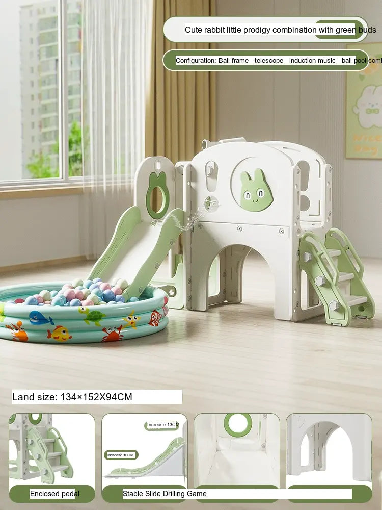Featuring a cute bunny theme, this climbing frame is available in a selection of appealing color options, including tender green and cream powder. The vibrant colors and playful design are sure to attract children's attention, making it a delightful addition to any indoor play area. The cute bunny design adds a whimsical touch to the frame, making your little ones feel like they are in a fun, magical habitat.