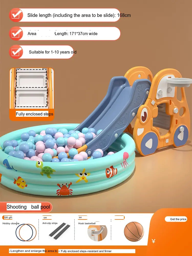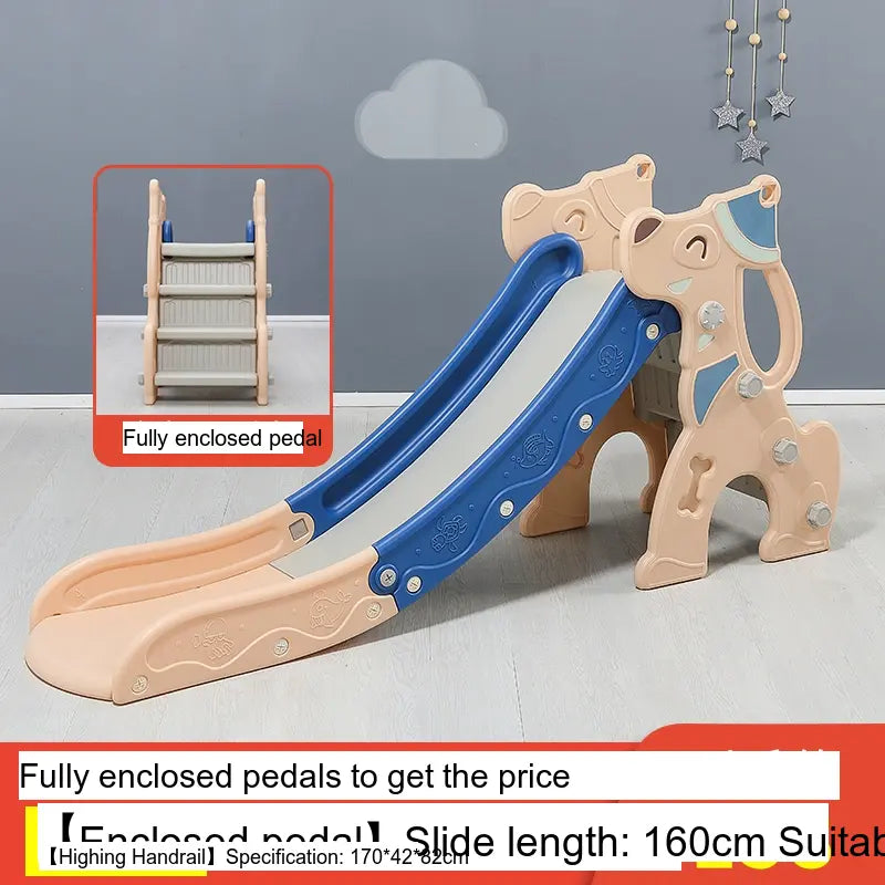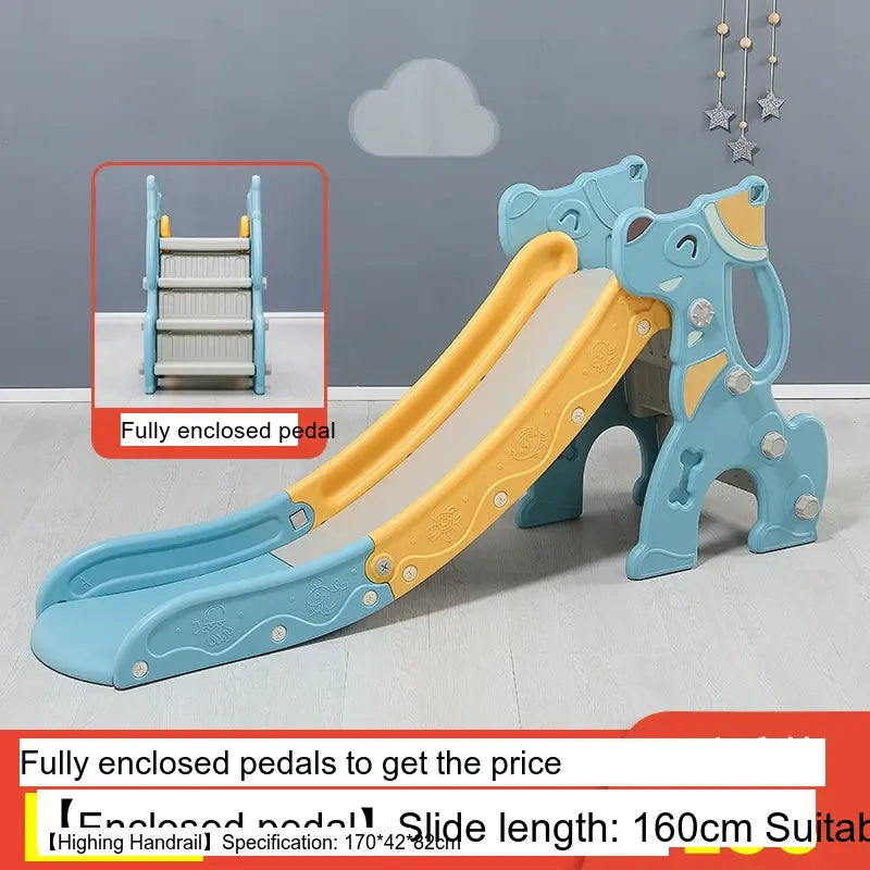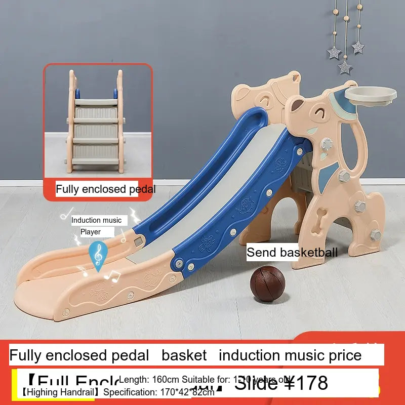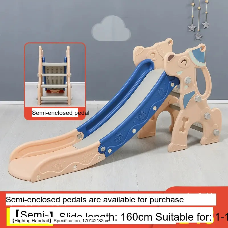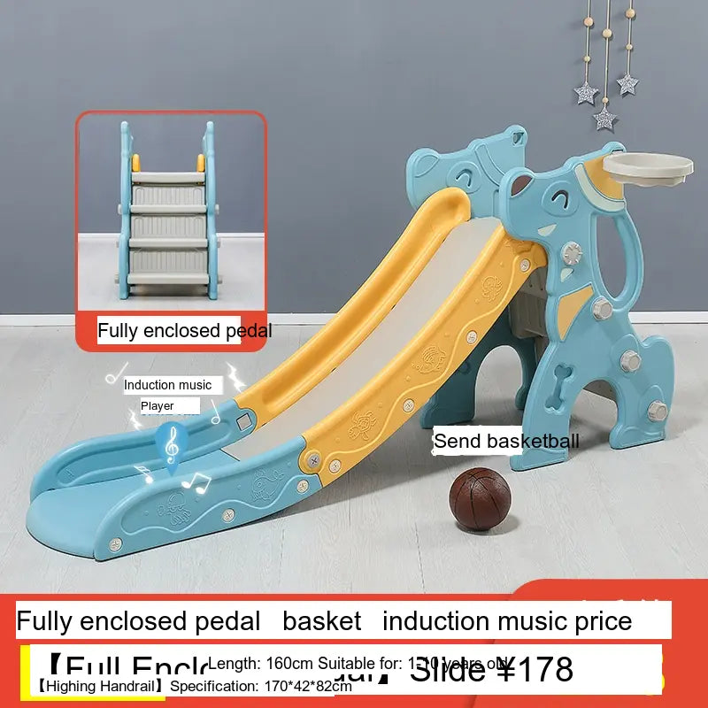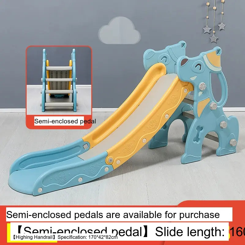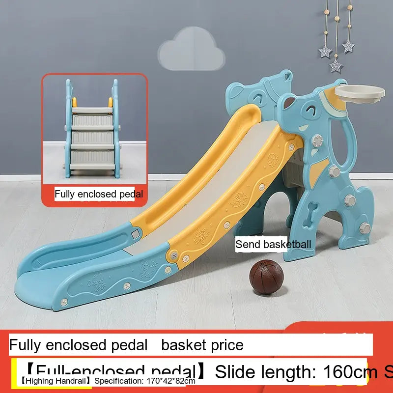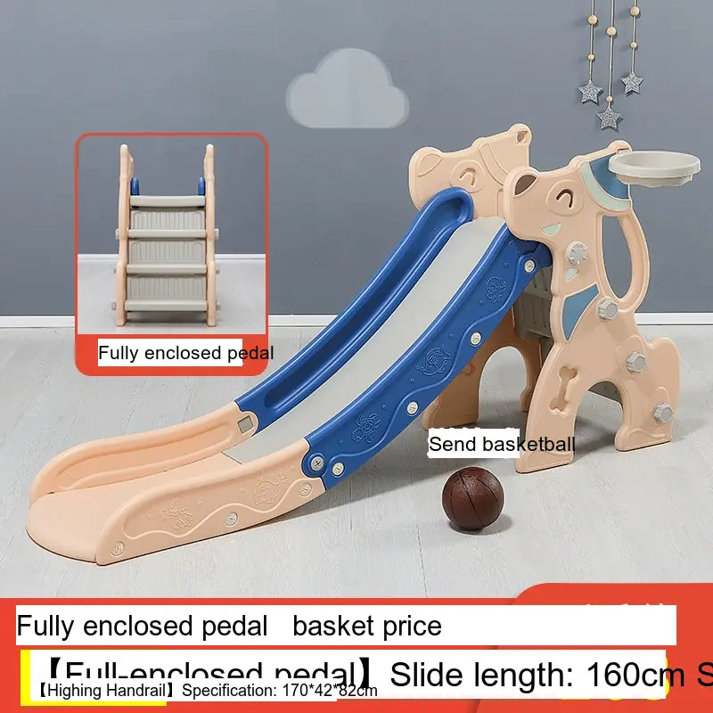 Made from high-quality, environmentally friendly HDPE plastic, the slide is durable, thick, and BPA-free. It features a versatile folding mechanism for easy storage and portability. Available in charming colors like Blue and Pink, it suits any playroom setting. The design includes fully enclosed anti-slip steps and a sturdy four-leg grounding system for excellent stability.
