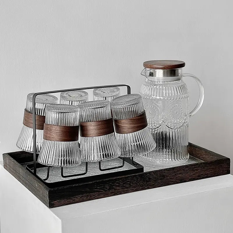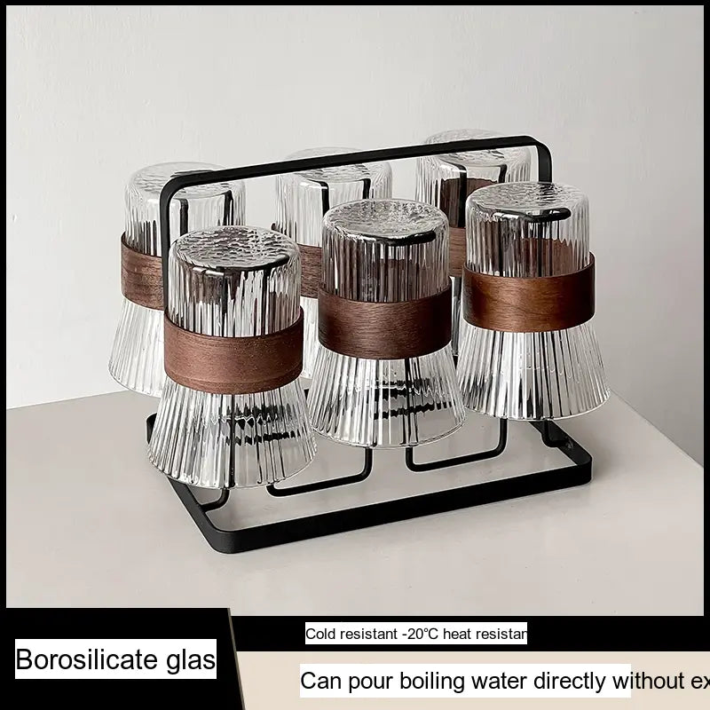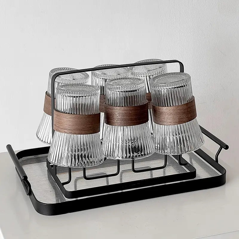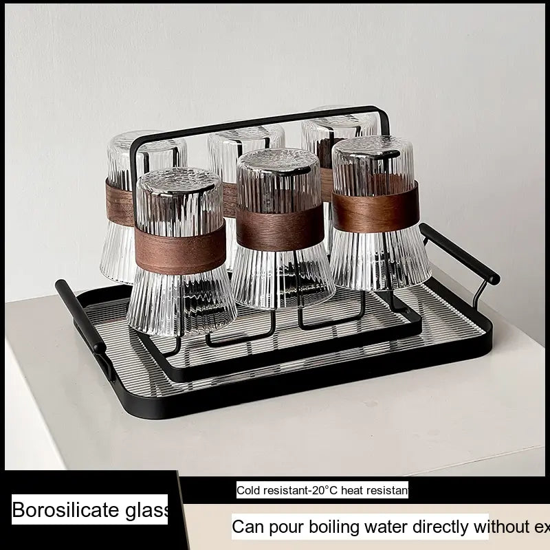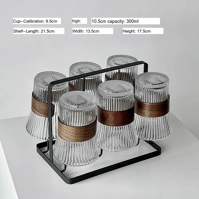 - Anastasia glass cup - set of six with cup holders, solar flower pots, and nanmu pallet