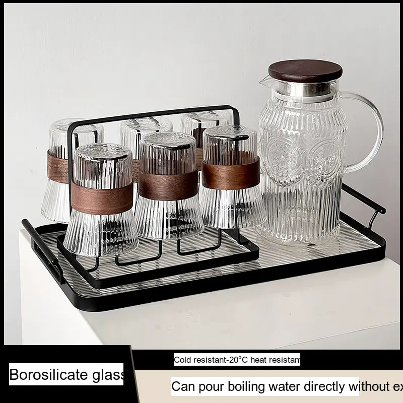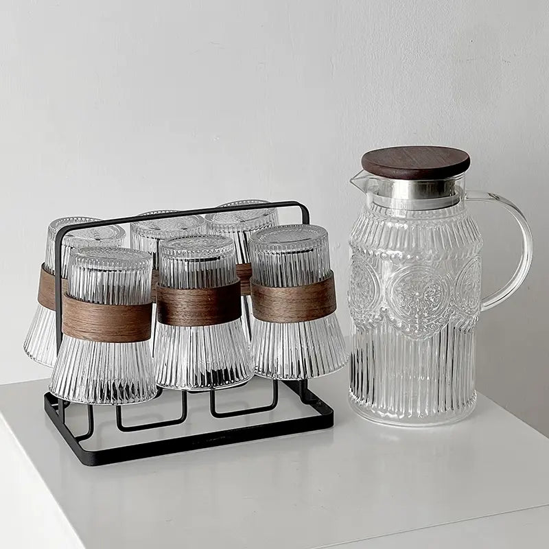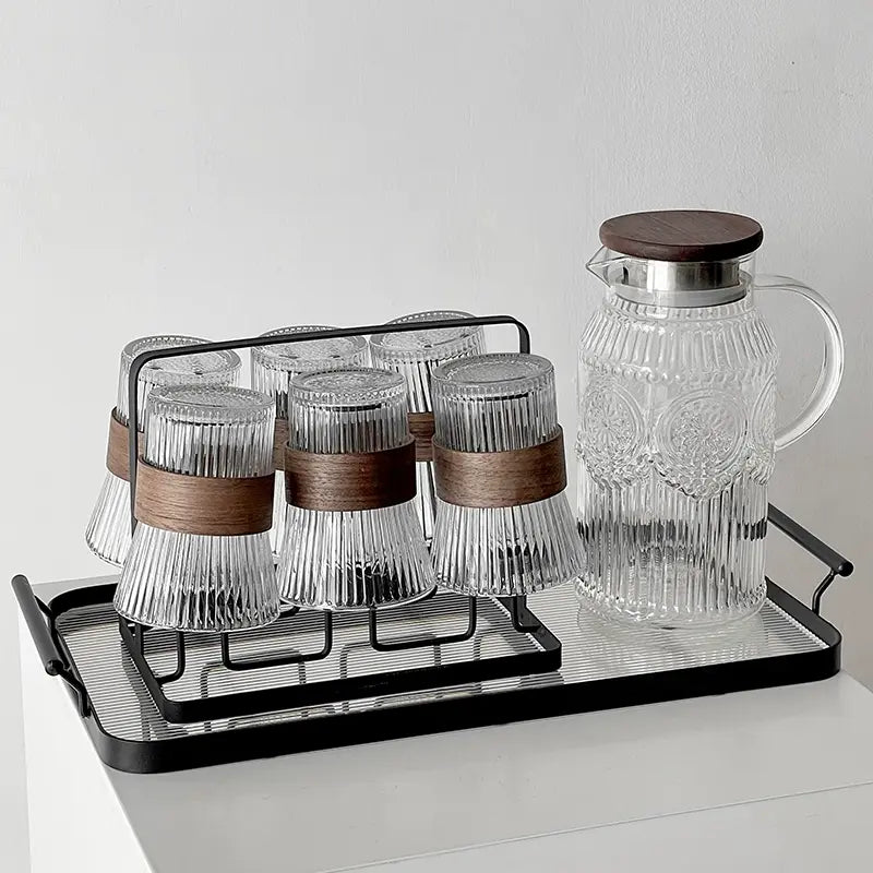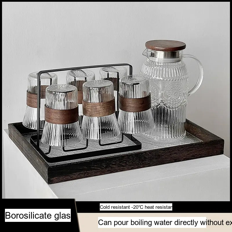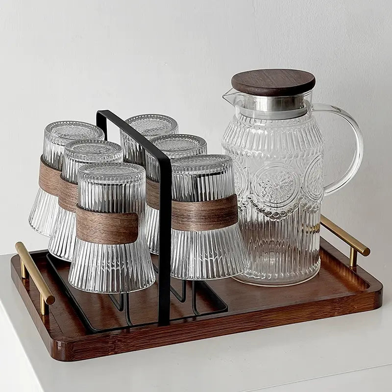 - Anastasia glass cup - set of six with cup holders, solar flower pots, and nanmu pallet
