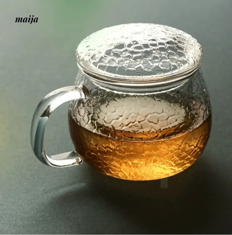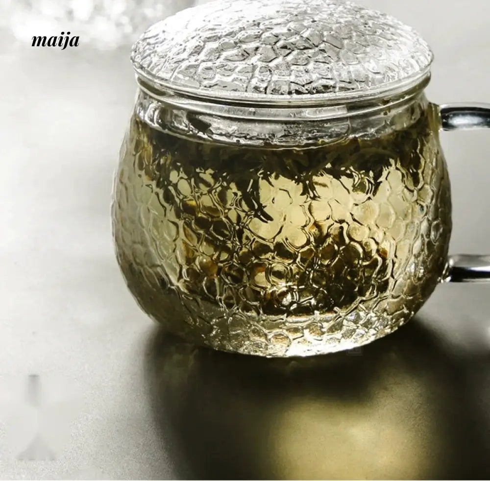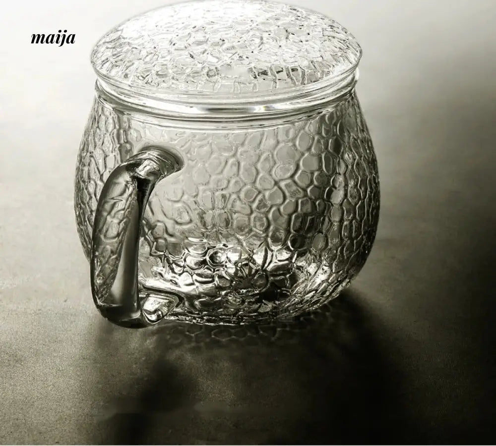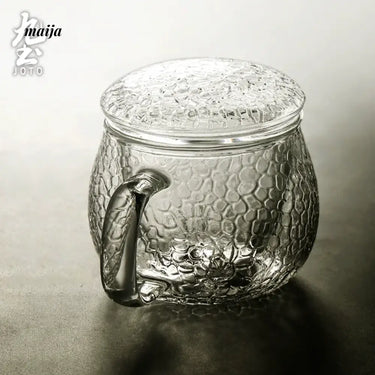 JOTO Hammered Glass Tea Cup with Lid for Thick Tea