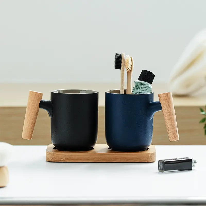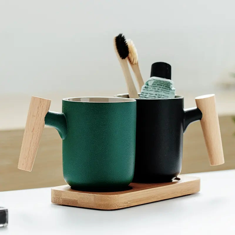 TIANRUN Sorrento Elegant Colorful Wooden Handle Ceramic Mouthwash Cup