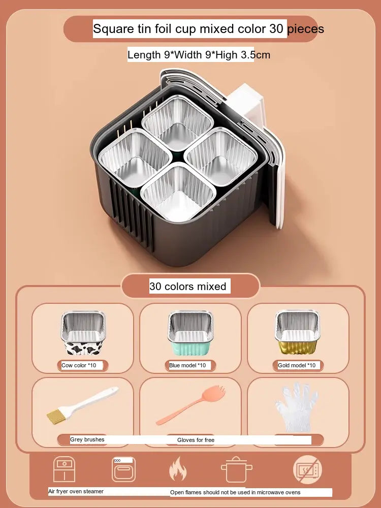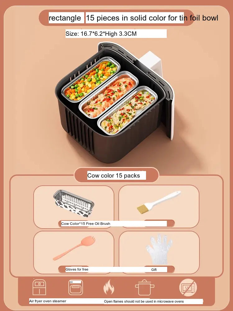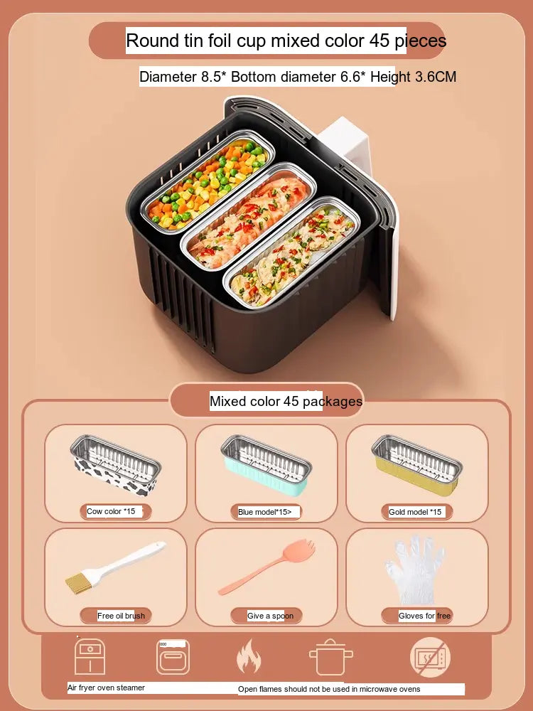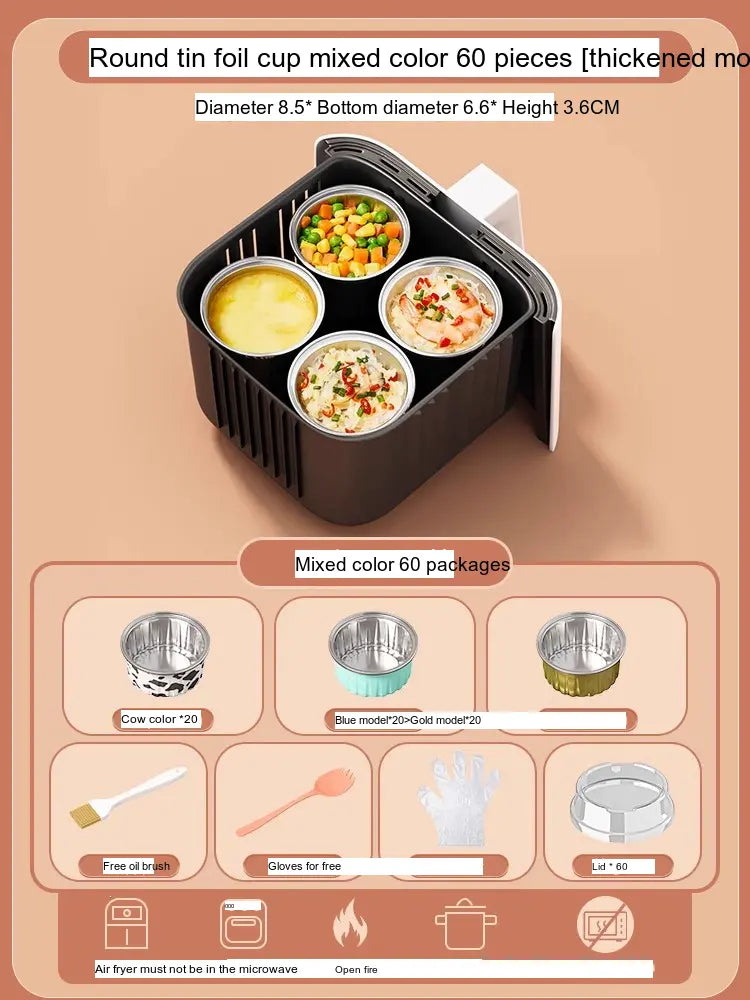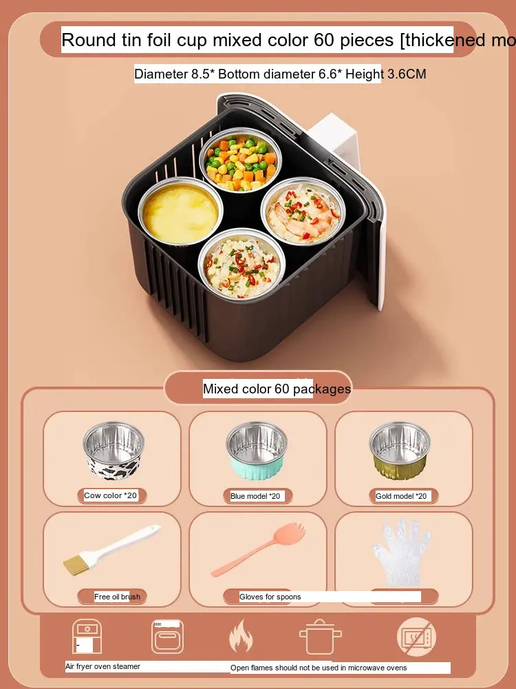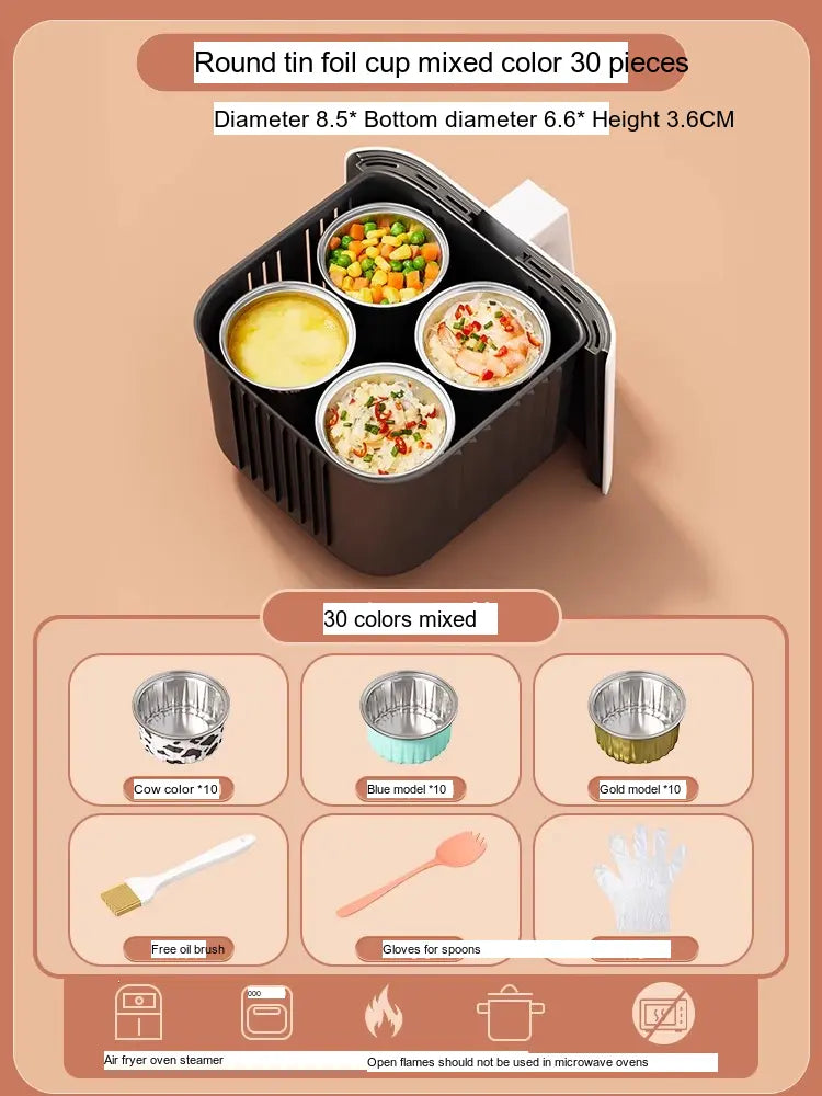 - [Value Combination Pack]: Enjoy 15 aluminum foil cups in assorted colors plus 15 bowls (Cow, Gold, or Light Blue), making it ideal for cooking up to three meals simultaneously.