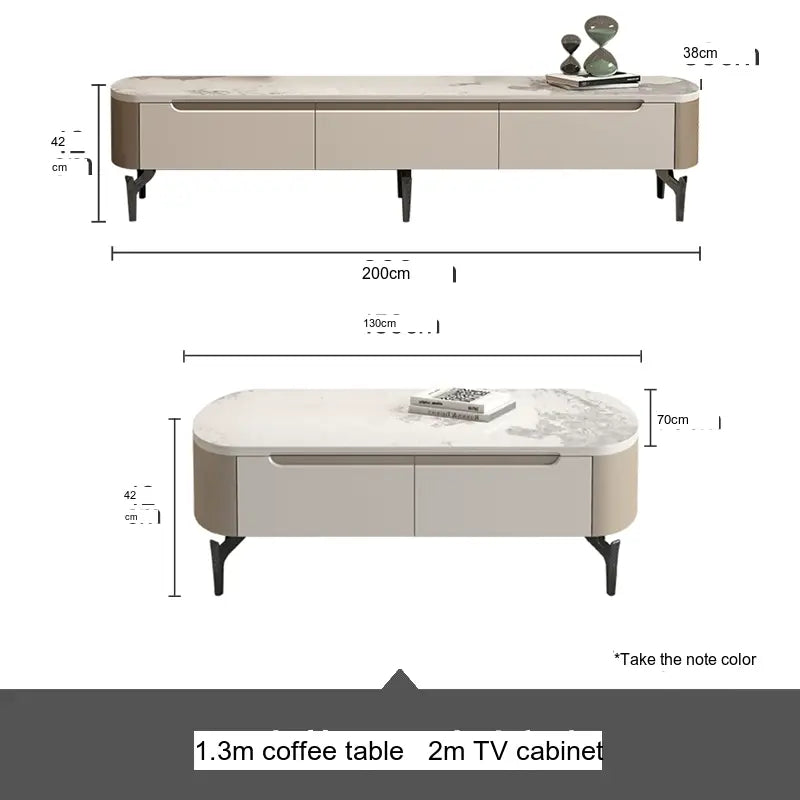 This versatile coffee table set includes two prominent pieces: a stunning 1.3-meter coffee table and a matching 2.0-meter TV cabinet, both crafted to enhance your interior decor. Ideal for hosting guests or enjoying a quiet night in, this set offers ample surface space for all your entertaining needs. Moreover, the coffee table's dimensions of 130cm x 70cm x 42cm ensure it fits seamlessly into both small and large living areas, making it a perfect choice for any household.