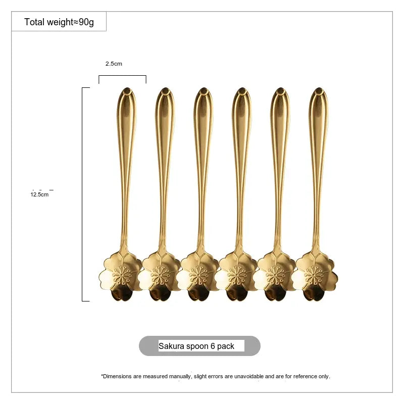 - 6-Piece Cherry Blossom Spoon Set: Similarly, this six-piece spoon set gives you the versatility needed for various courses.