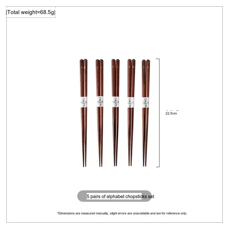 Artistry in Design: The set includes five pairs of beautifully crafted chopsticks, each measuring 22.5 cm in length. The thoughtful design focuses on comfort and usability, making these chopsticks suitable for both experienced users and those new to the art of eating with chopsticks. Their solid color finish showcases the natural grain of the wood, bringing a sense of warmth and authenticity to your dining table.