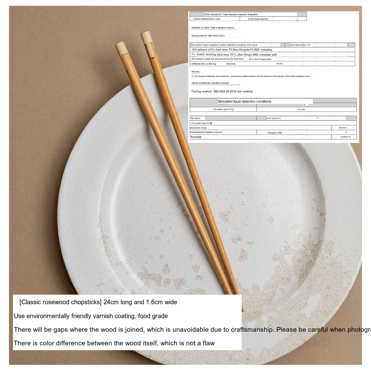 This product features an exquisite range of chopsticks made from different types of environmentally friendly woods—offerings include classic yellow sandalwood, cherry wood, and black walnut. Each pair is thoughtfully designed to highlight the natural beauty of the wood while also providing superior functionality.