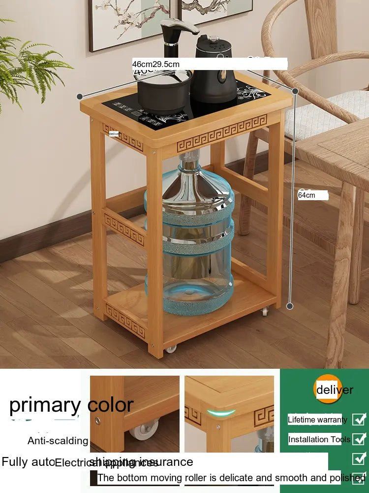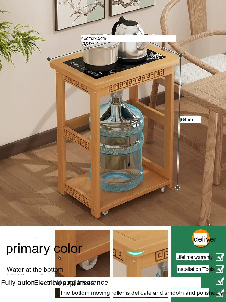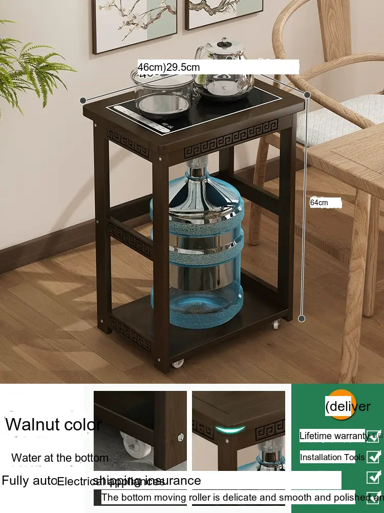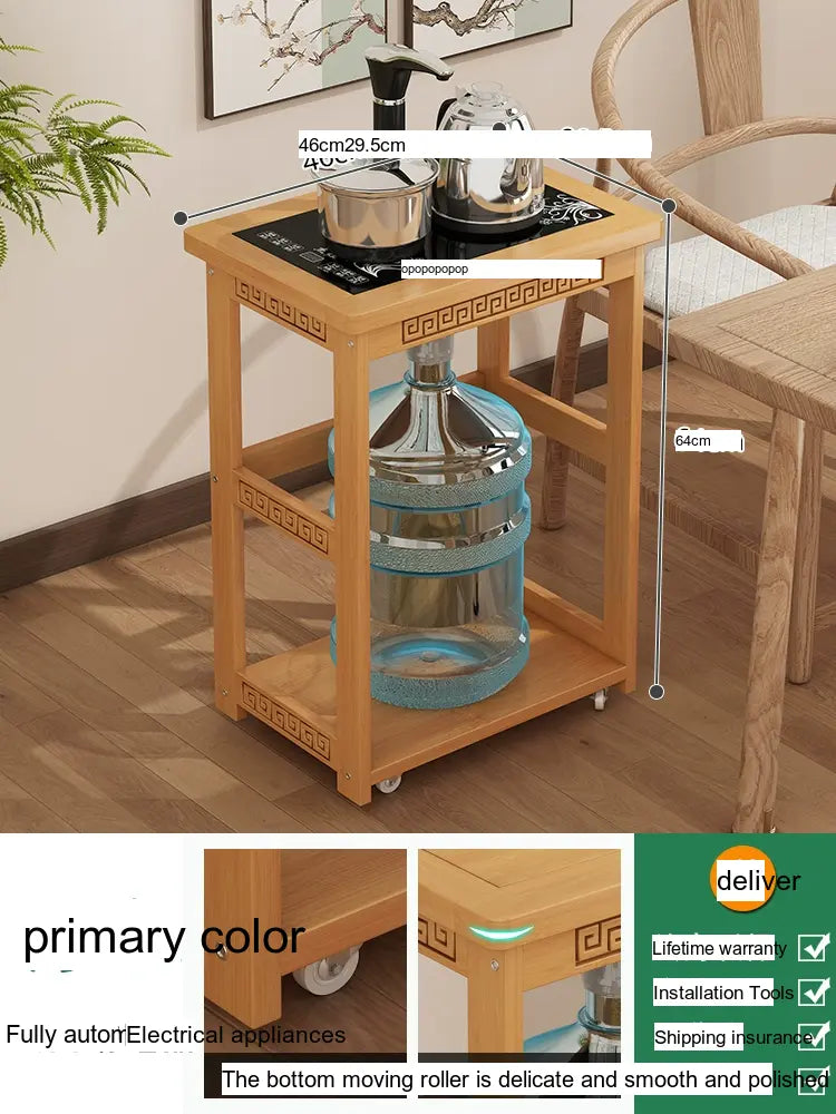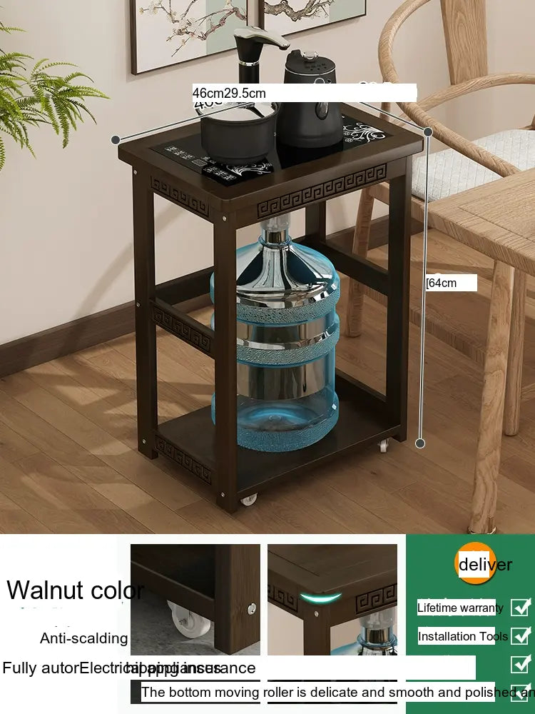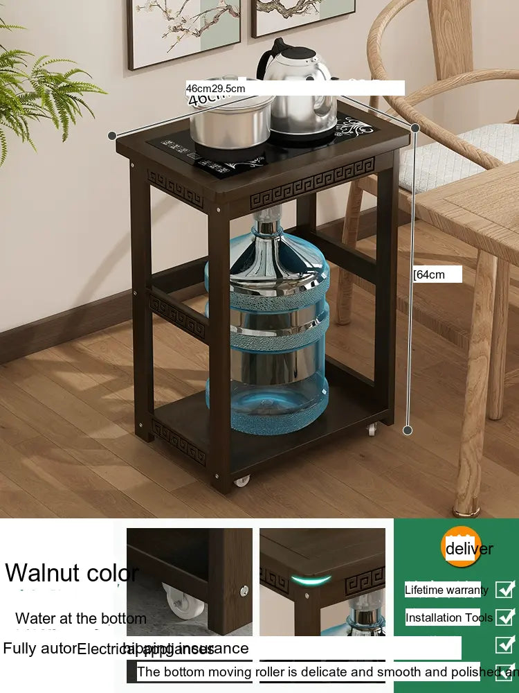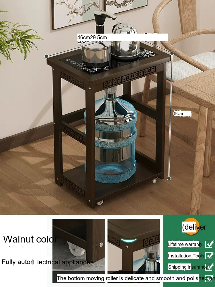- Mobility: Equipped with universal wheels, this coffee cart is easy to move around your space. Whether you need to transport it from the kitchen to the living room or adjust its position, the 360-degree rotating wheels facilitate effortless relocation.