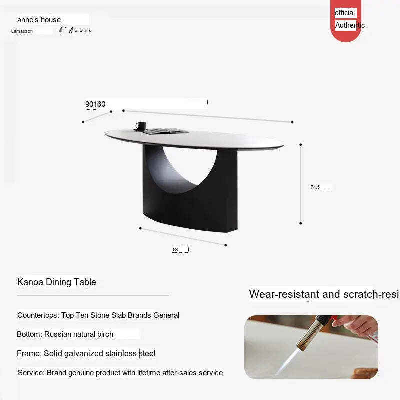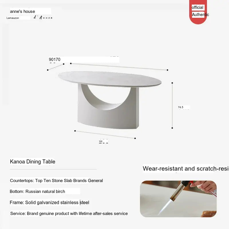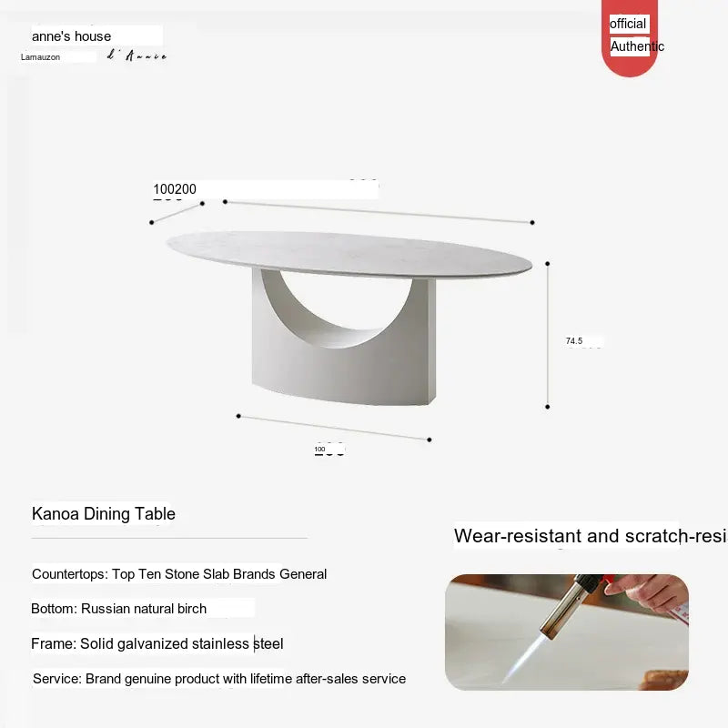The ANNE Caspian Dining Table features a luxurious rock plate finish that is both durable and easy to maintain. This high-quality surface not only enhances the visual appeal of the table but also protects it from spills and scratches, making it a practical choice for everyday use. The cream stone color adds a touch of light and warmth to your dining area, seamlessly complementing a range of interior styles from modern to classic.