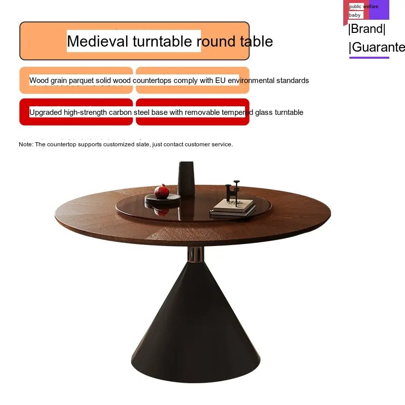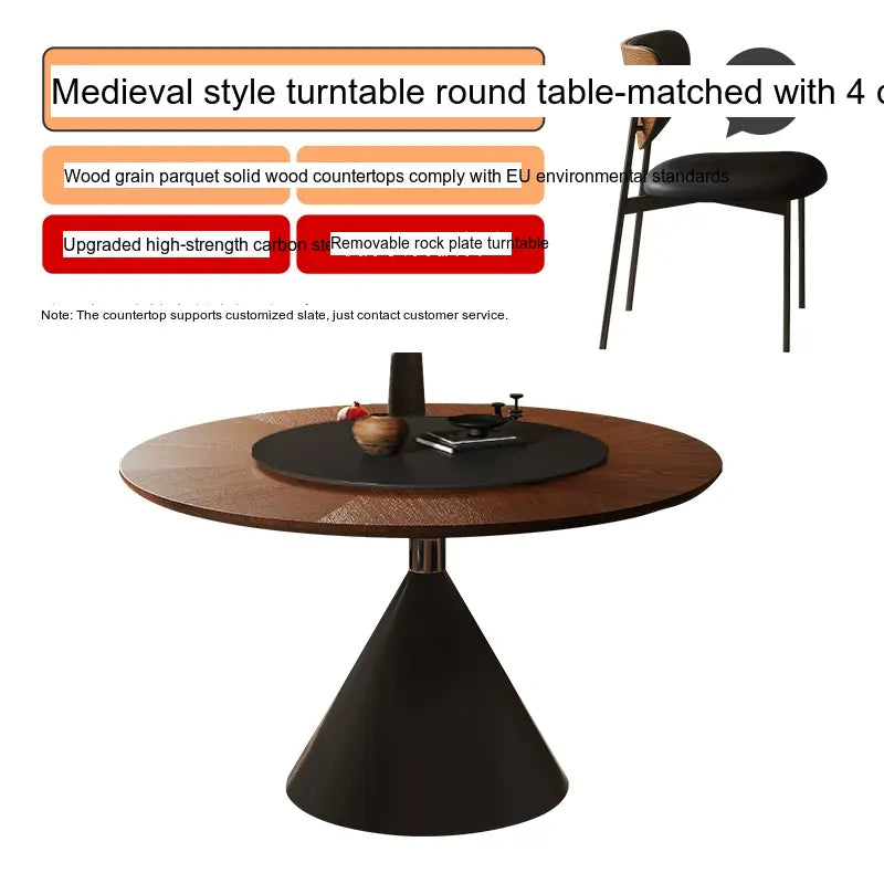 The table also features a built-in turntable option, allowing for easy sharing of dishes around the table. This thoughtful addition enhances dining convenience and encourages a communal atmosphere during meals. As an additional option, you can customize the surface and style to perfectly align with your home decor.