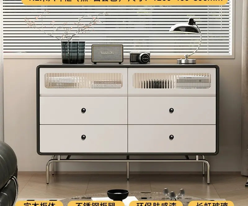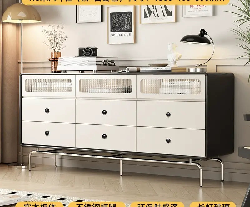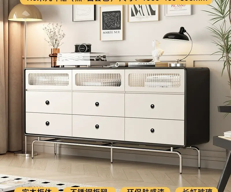 The Juliette cabinet showcases exquisite craftsmanship, crafted from premium oak wood that guarantees durability and longevity. The retro design adds a nostalgic feel while maintaining a sleek and contemporary look that complements a variety of interior styles. Available in multiple color options, including Meteorite Black, Black and White, Beige Apricot, and Creamy White, this cabinet can seamlessly integrate into your home décor or serve as a bold focal point.