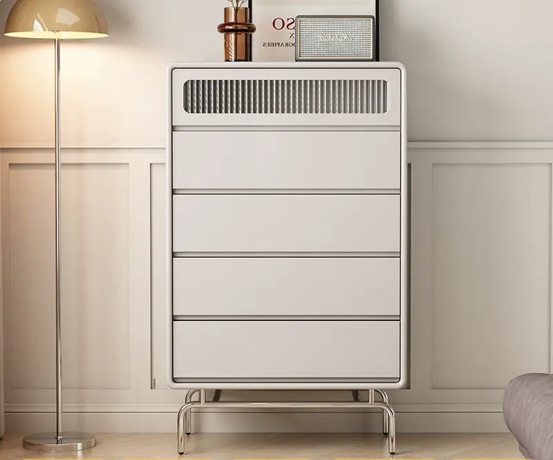 With five spacious drawers, the LINYUE Juliette cabinet provides ample storage for all your essentials. The frame structure design offers stability while ensuring that the drawers glide smoothly, making it easy to access your belongings. Organize everything from clothing and accessories to books and personal items with ease. Keep your space clutter-free while adding a touch of sophistication.