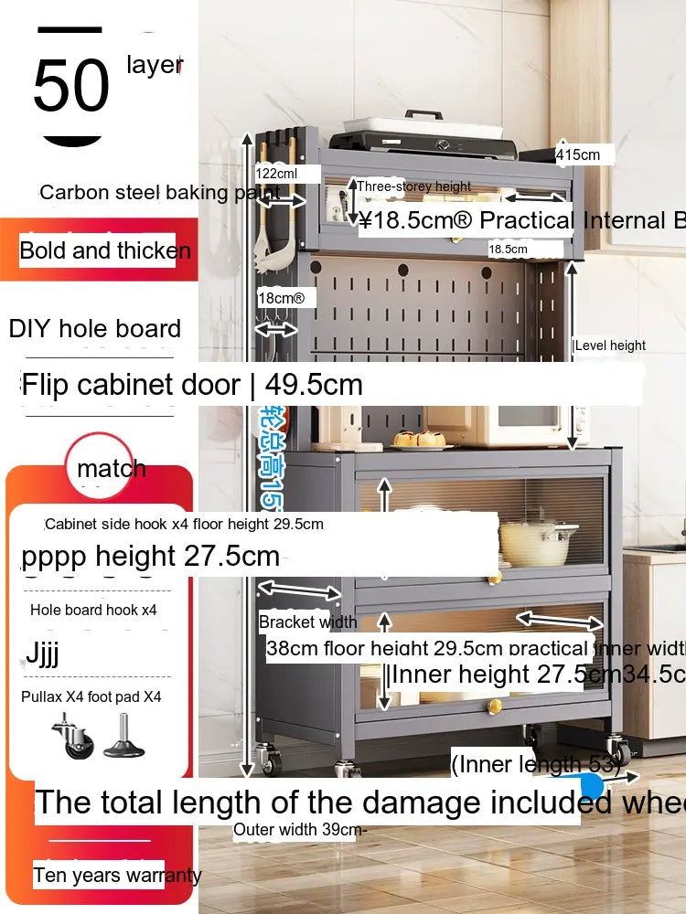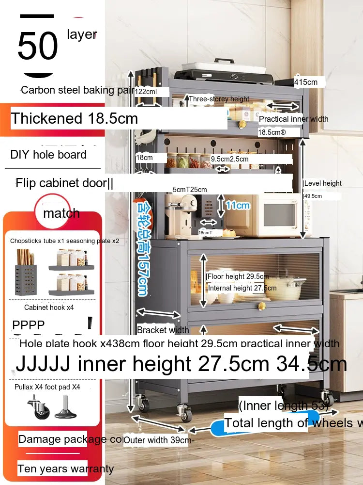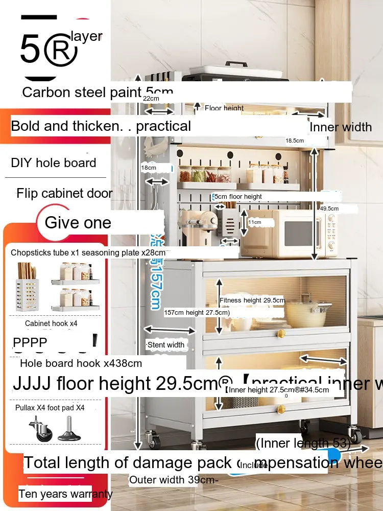 The SHUAISHI Mariposa cabinet features a sleek, floor-type design available in multiple configurations, including Gray 5-layer 58, Gray 5-layer 72, Gray 5-layer 58 full set, and White 5-layer 58 full set. Crafted from high-quality metal, this cabinet promises durability and longevity. The sophisticated gray or crisp white finishes ensure that it complements any kitchen décor, while the tall, multilayer design maximizes your storage efficiency.