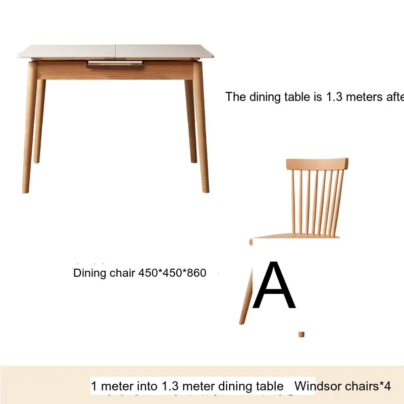 One of the standout features of the Hiroshi dining chair set is its versatility. The dining table is adjustable, with multiple size options available, allowing you to choose a configuration that best fits your dining area. Whether you have a cozy nook or a spacious open plan, this table can easily adapt to your needs. Complement your dining table with a choice of chairs—Windsor, Maverick, or vibrant green chairs—providing you with endless possibilities to customize your setting.