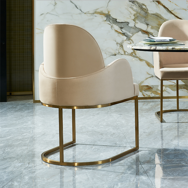 The YIMI Marco Dining Set features a magnificent rectangular table that exudes sophistication. Its stunning marble surface is a feast for the eyes, beautifully showcasing a pattern that is utterly unique. The marble not only adds to the visual appeal but is also highly durable, ensuring that your dining set maintains its elegance for years to come.