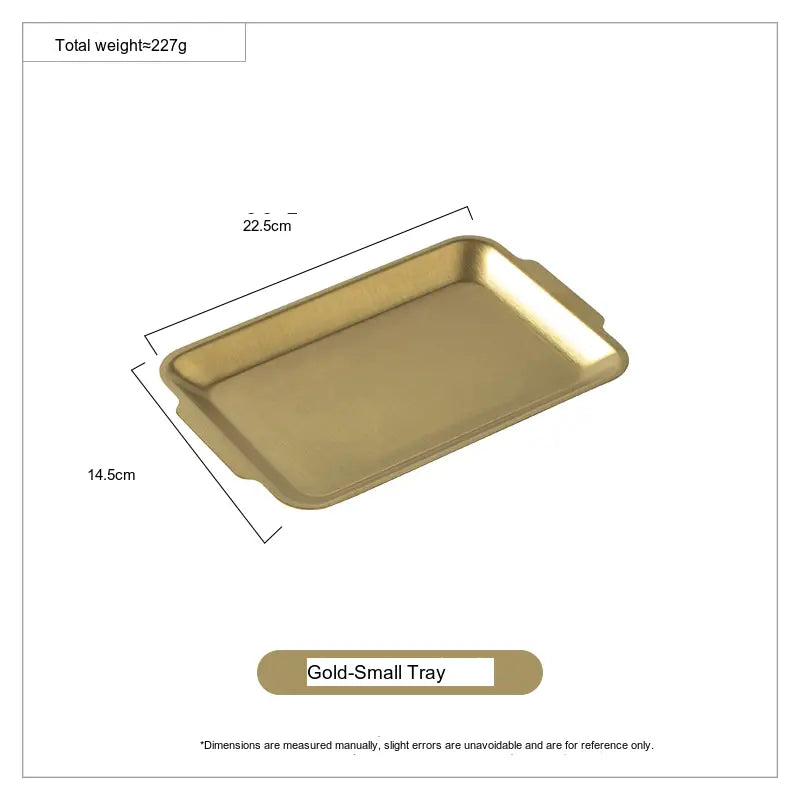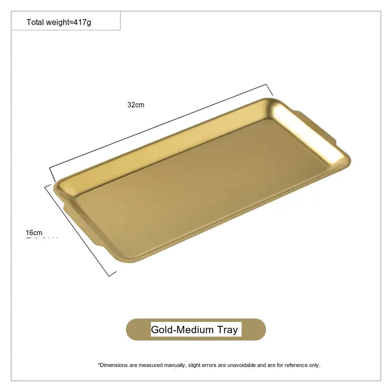 Constructed from high-quality 201 stainless steel, this tray is designed to withstand daily use without compromising its beauty. Stainless steel is renowned for its resistance to rust and corrosion, ensuring that this tray retains its gleaming appearance over time. Additionally, the tray features a matte finish that not only adds an element of sophistication but also provides a practical, slip-resistant surface for securely placing items.