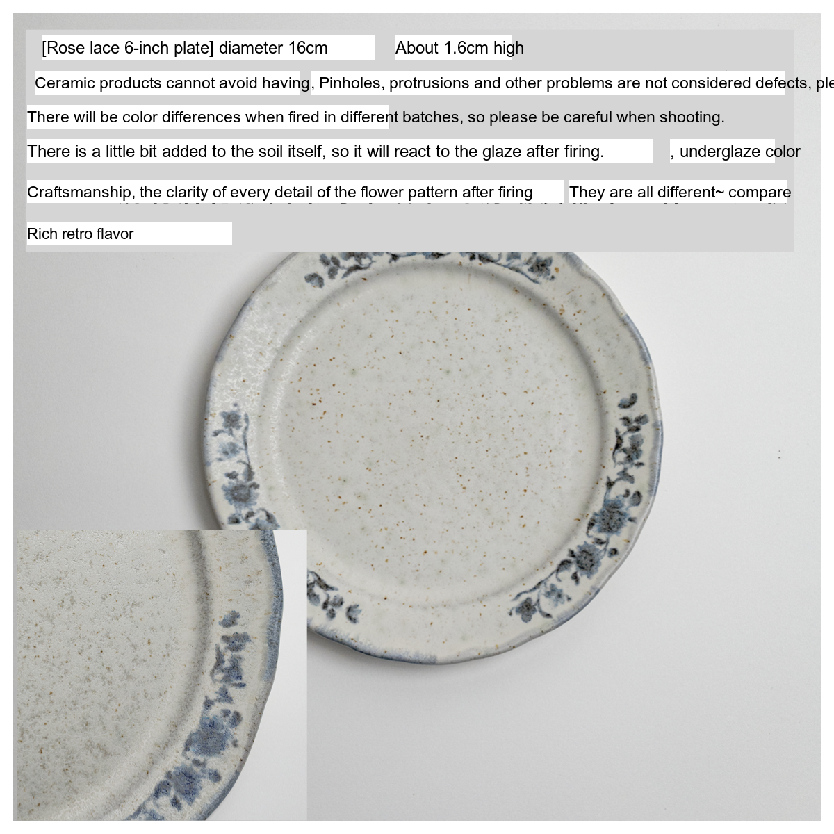 - Rose Lace 6-inch Plate [Blue]