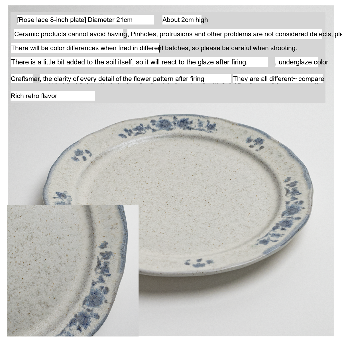 - Rose Lace 8-inch Plate [Blue]