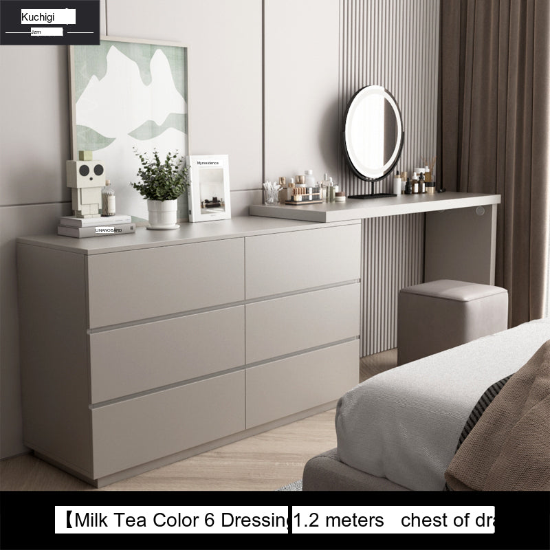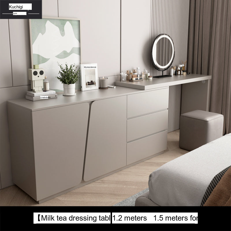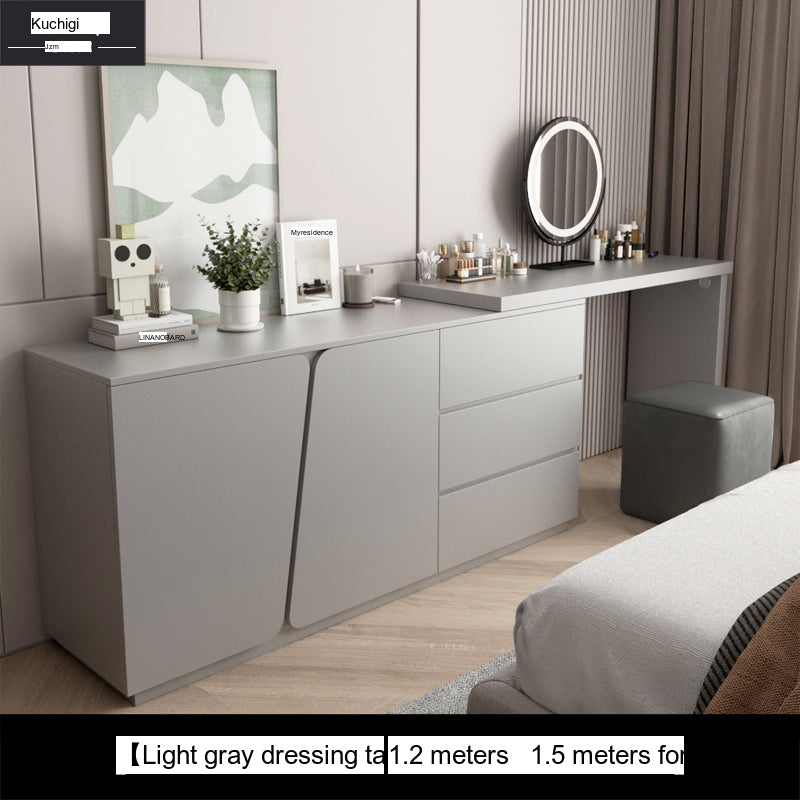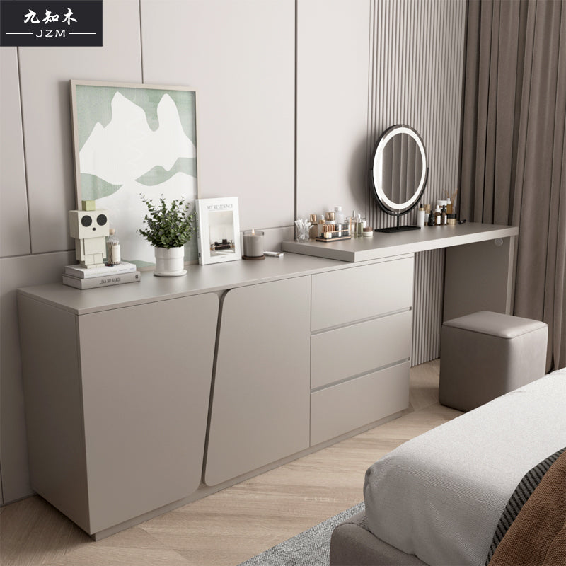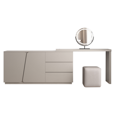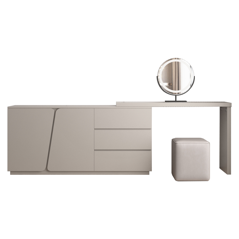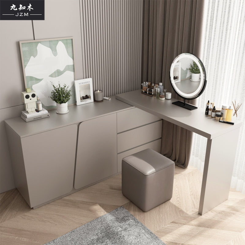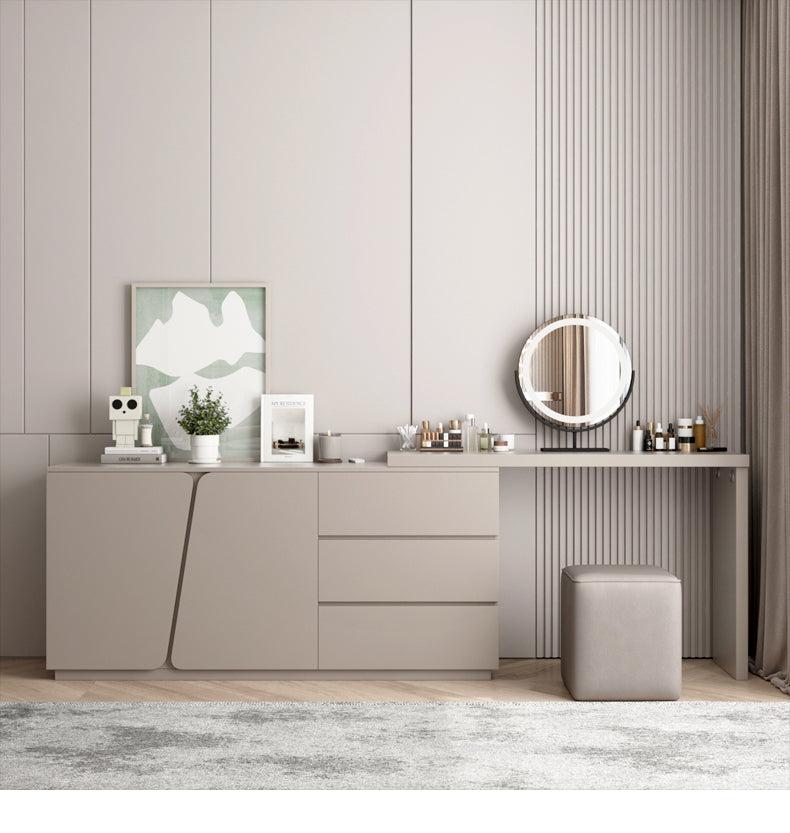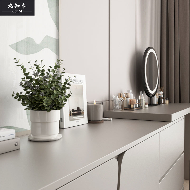 Customization options are available upon request. Depending on your needs, you can choose different color classifications such as high-grade gray, light gray, or the captivating milk tea color, allowing you to personalize your dressing table to perfectly match your home decor.