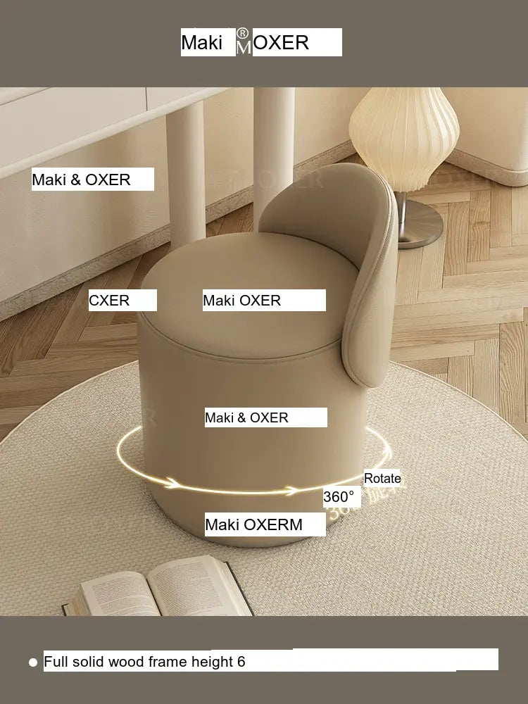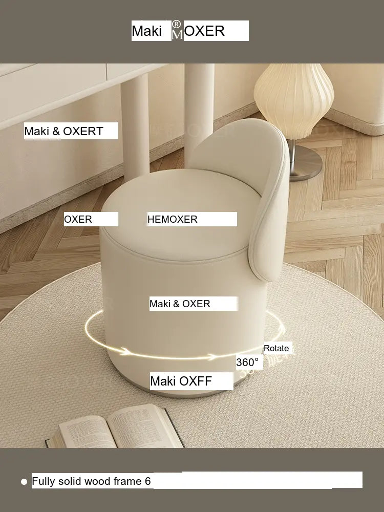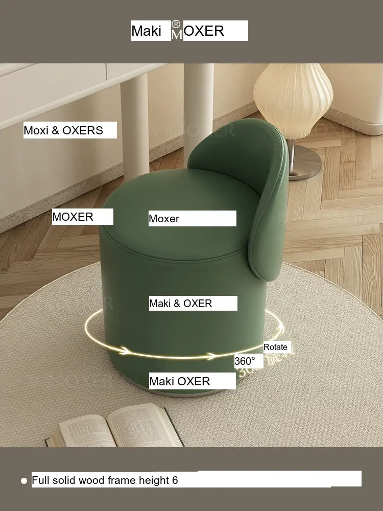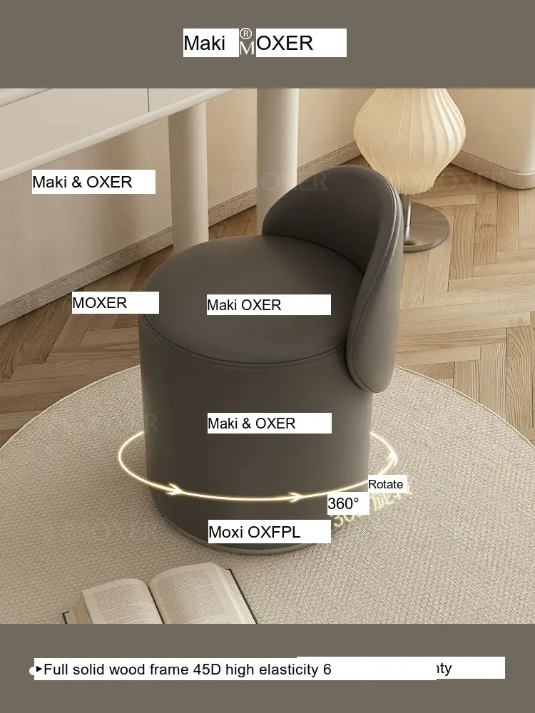 Transform your makeup space with the elegance and functionality of the MOXER Yuki Elegant Rotating Makeup Stool. Order now and experience the perfect combination of comfort, style, and durability!
