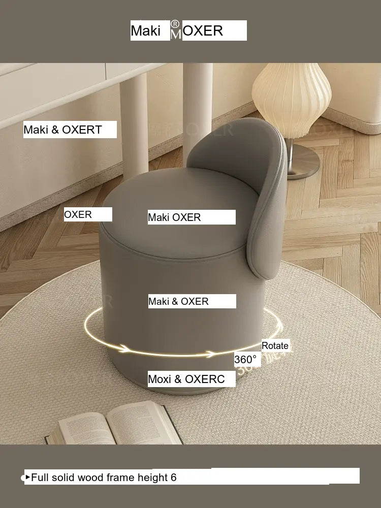 Introducing the MOXER Yuki Elegant Rotating Makeup Stool, the perfect blend of style and functionality for your makeup routines and leisure times. Crafted with a modern aesthetic, this rotating stool is designed to enhance both your dressing area and your overall living space. The minimalist design captures the essence of contemporary art, ensuring it fits seamlessly into any decor.