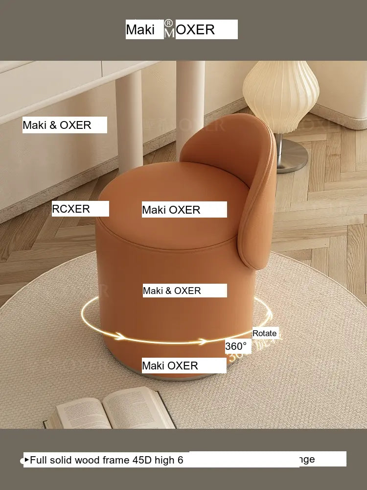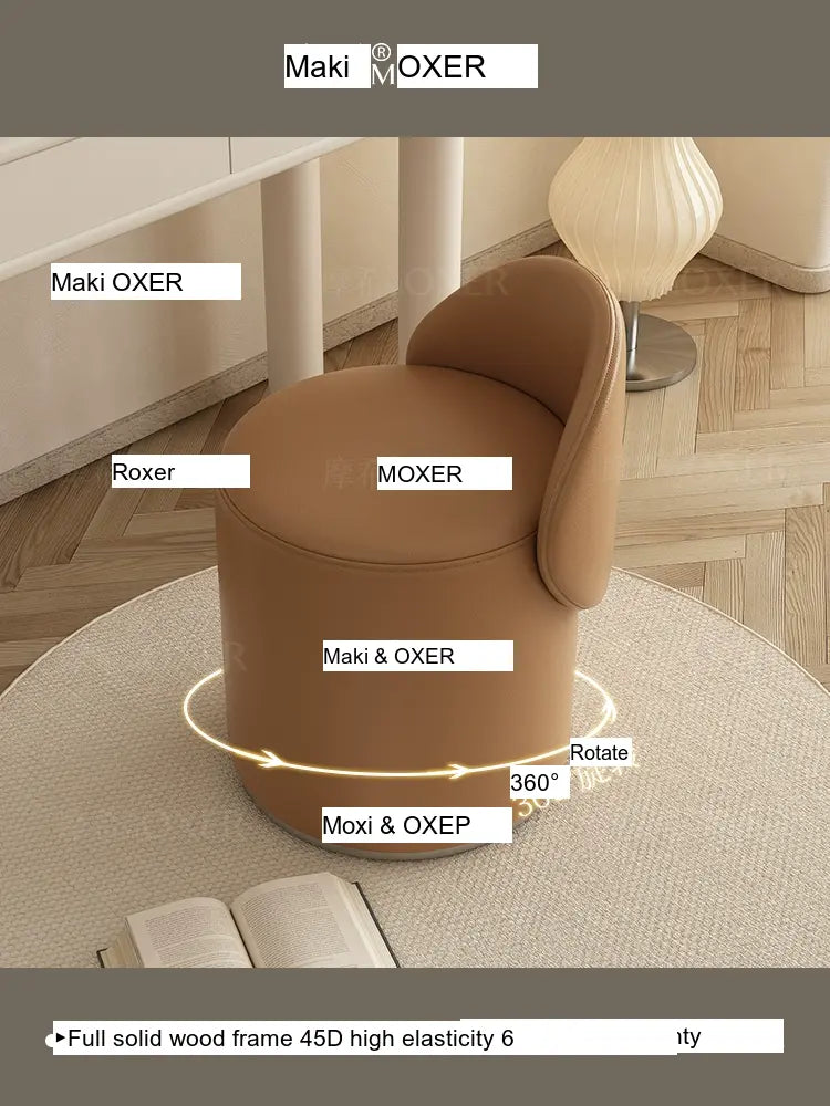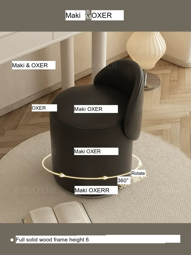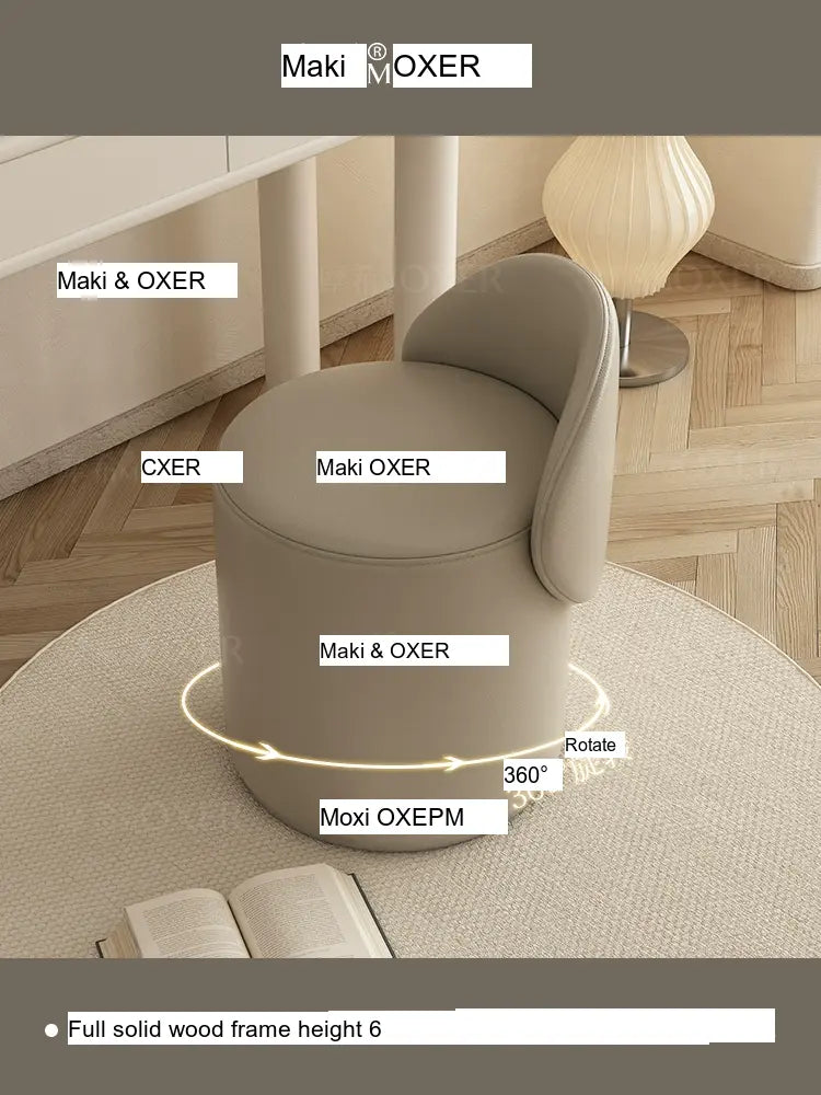 Equipped with a 360° silent turntable, the stool enhances your mobility while ensuring a peaceful makeup experience. The surface material is made from high-quality leather that is both breathable and wear-resistant, designed to endure the rigors of everyday use without losing its charm.