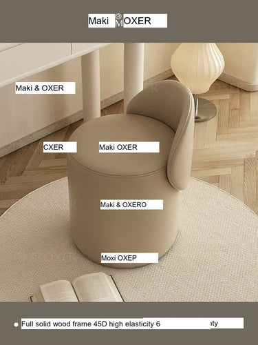 The stool features a high-density rebound sponge that offers superior comfort, whether you are applying makeup or enjoying a moment of relaxation. With a seat height of 45cm, it is ergonomically designed to cater to adults. The solid wood construction ensures durability while matching various styles ranging from modern to minimalist.