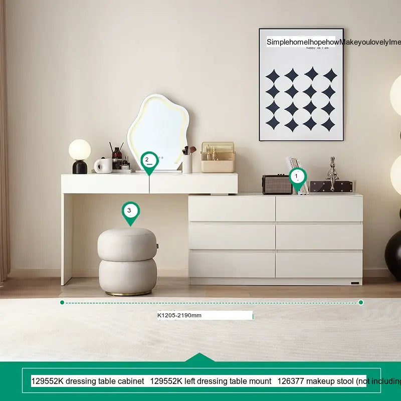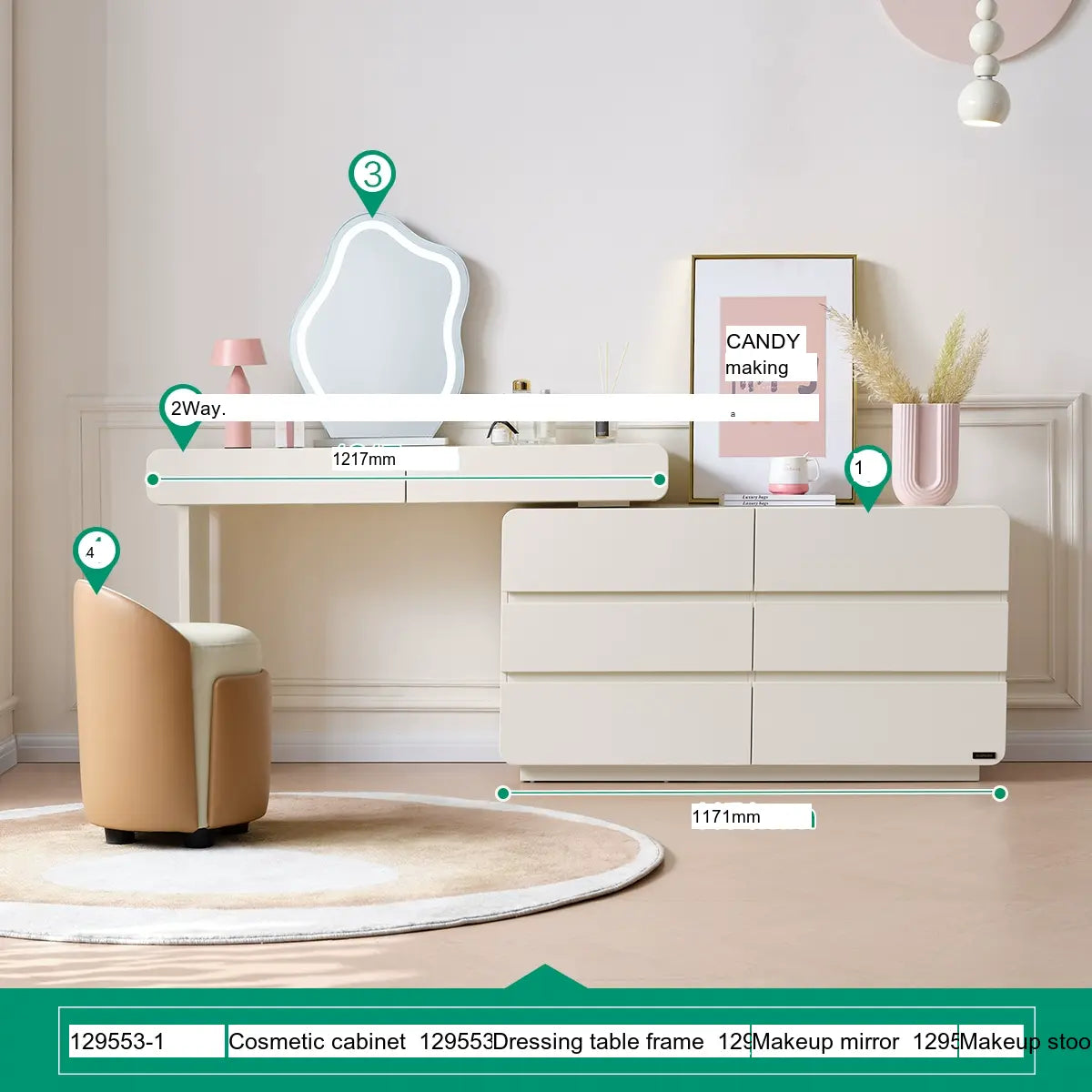 This vanity comes equipped with an exquisite mirror that features adjustable LED lighting, providing clear illumination for your makeup application. Whether you're getting ready for an important event or preparing for a busy day, the mirror's lighting can be customized to suit the time of day, offering the perfect brightness for any occasion. The design of the mirror enhances the overall aesthetic and makes the application process enjoyable and effortless.