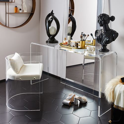 In conclusion, the ROOMHOME Zandria Creative Minimalist Makeup Desk is an exceptional addition to any small living space. Its stylish design, practical functionality, and customizable options make it a perfect companion for adults looking to enhance their lifestyle. Transform your beauty routine and living space with this exquisite acrylic makeup desk.