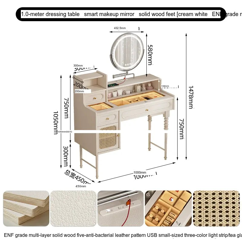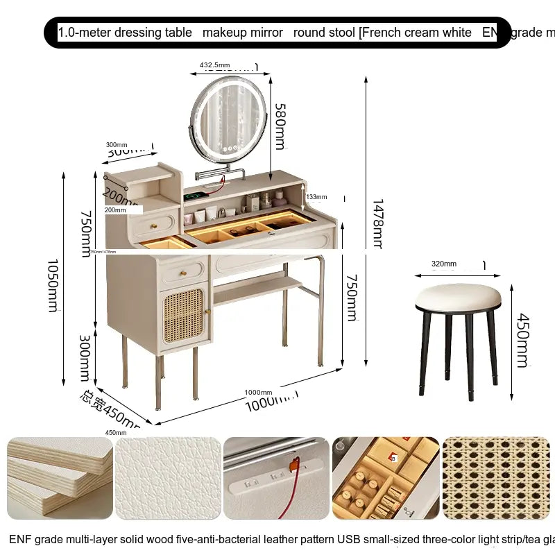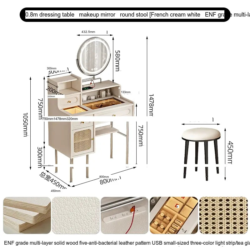 - Elegant Design: The dressing table features a beautiful cream color that adds a soft, inviting touch to any room. Its sophisticated design hints at classic French styling, making it perfect for those who appreciate timeless elegance.